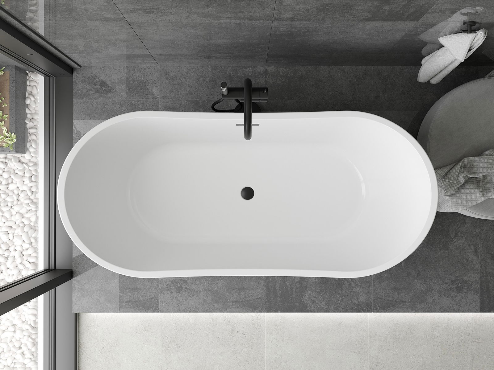 Mexen Montana är ett modernt fristående badkar med måtten 180 x 80 cm, som kombinerar elegans och funktionalitet. Dess ovala form och svart-vita färgschema passar perfekt i alla inredningar. Badkaret är gjort av sanitetsakryl och har hög motståndskraft mot mattning och UV-strålning. Med en praktisk överfyllnad och inkluderat avlopp med klick-klack-plugg blir användningen bekväm. Det är ett idealiskt val för personer som letar efter stilfulla och hållbara lösningar i badrummet.
