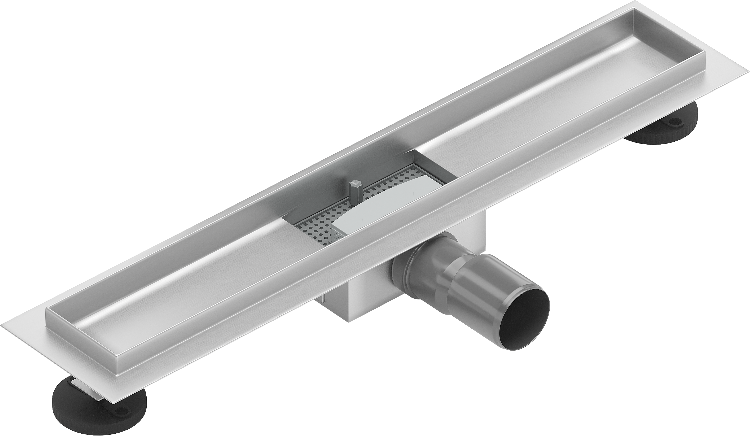 Avloppet är utrustat med justerbara ben, som möjliggör anpassning av avloppets höjd och utjämning på en ojämn yta. På så sätt är avloppet ännu bättre anpassat till förhållandena i det aktuella badrummet.