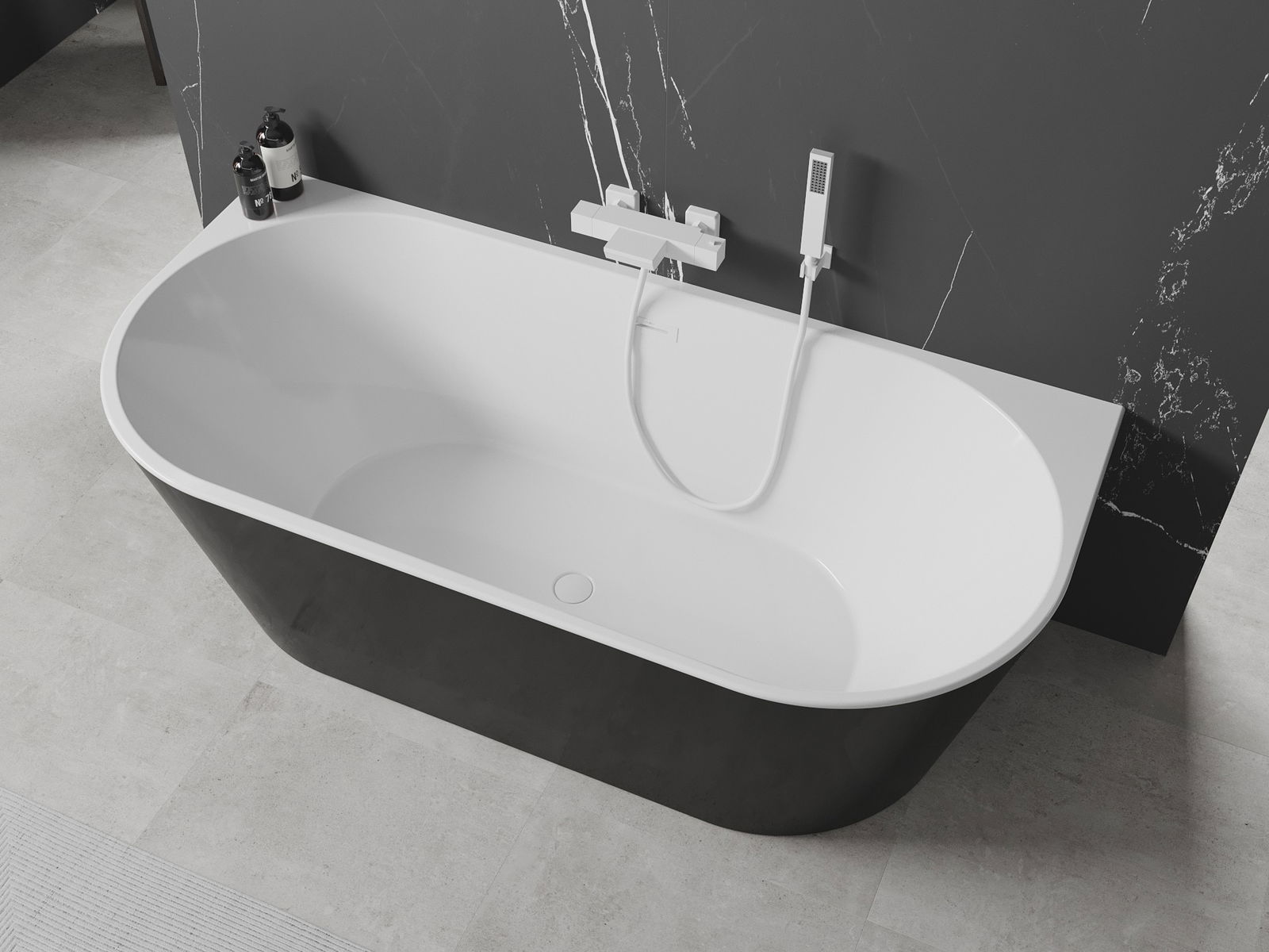 Mexen Oval fristående väggnära badkar 150 x 75 cm, vit/svart, vit överfyllnad - 52671507575-20