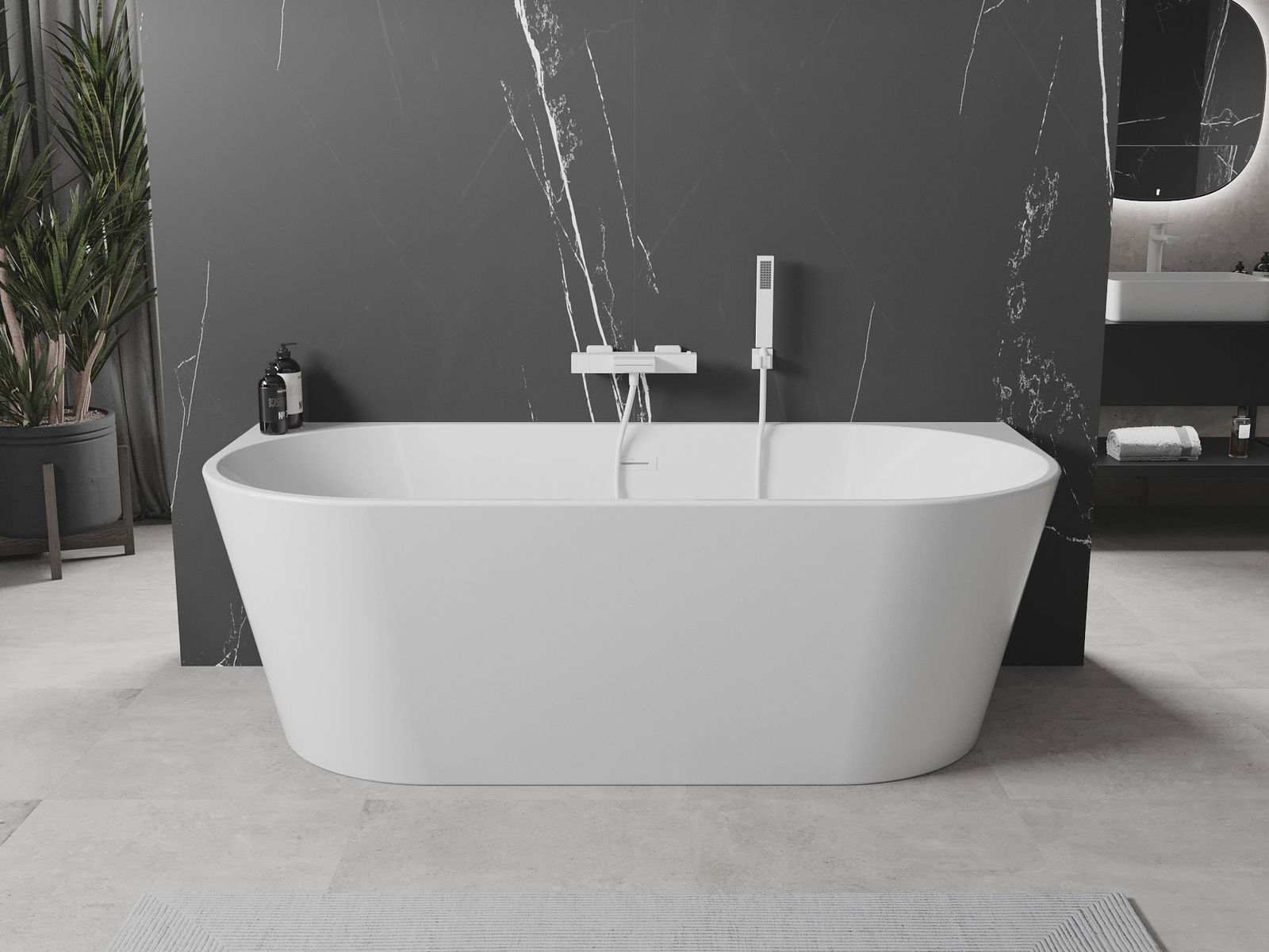 Upptäck en ny nivå av avkoppling med det fristående badkaret Oval. Dess innovativa design med måtten 170 x 80 cm passar perfekt in i varje modern badrumsinredning. Tillverkat av sanitetsakryl, ger det hållbarhet och motståndskraft mot mattning och UV-strålning. Den ovala formen och vita färgen tillför elegans, och överfyllnadshålet ökar funktionaliteten. Badkaret monteras vid väggen, vilket underlättar rumsplaneringen. I setet ingår sifon och klick-klack-propp, vilket gör installationen ännu enklare.