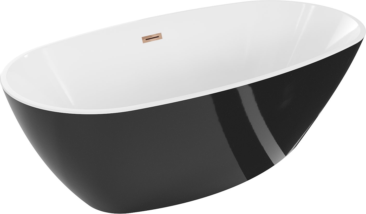 Fristående badkar 180 x 80 cm är den perfekta lösningen för moderna badrum. Dess ovala form och glänsande yta i vit-svart färg framhäver inredningens elegans. Den höga kvaliteten av sanitetakryl säkerställer hållbarhet, och roséguld i finishdetaljerna ger en unik charm. Överflödshål och mittavlopp ökar funktionaliteten. Badkaret är resistent mot mattning och UV-strålning, vilket gör att det behåller sitt vackra utseende länge.