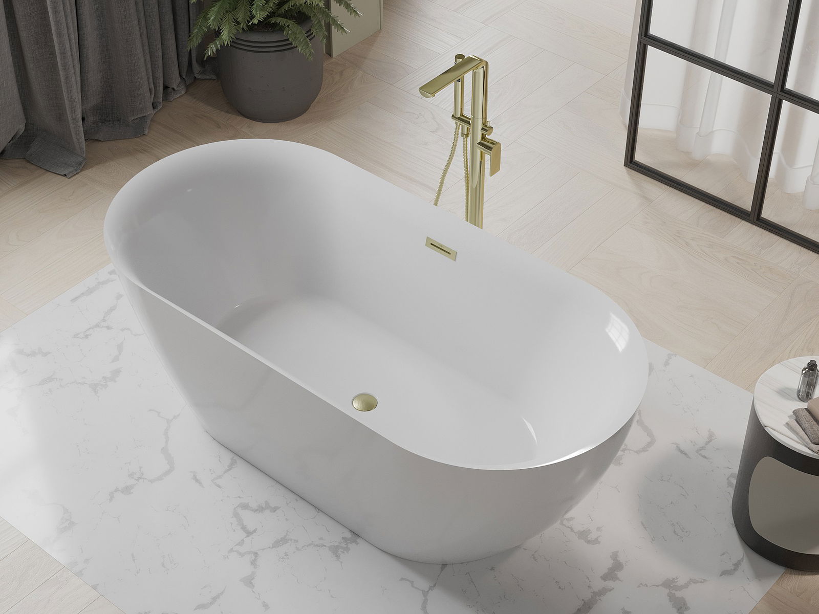 Mexen Roxy fristående badkar 170 x 80 cm, vit, overflow borstad guld - 51201708000-55