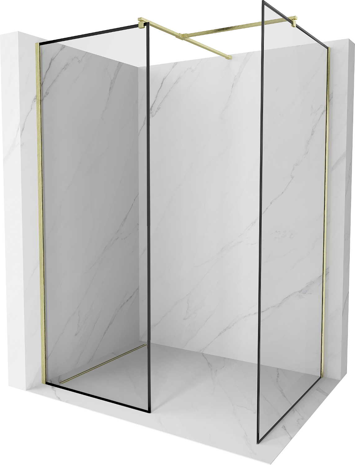Mexen Kioto Duschvägg Walk-in 120 x 120 cm, svart ram, borstad guld - 800-120-202-55-70-120
