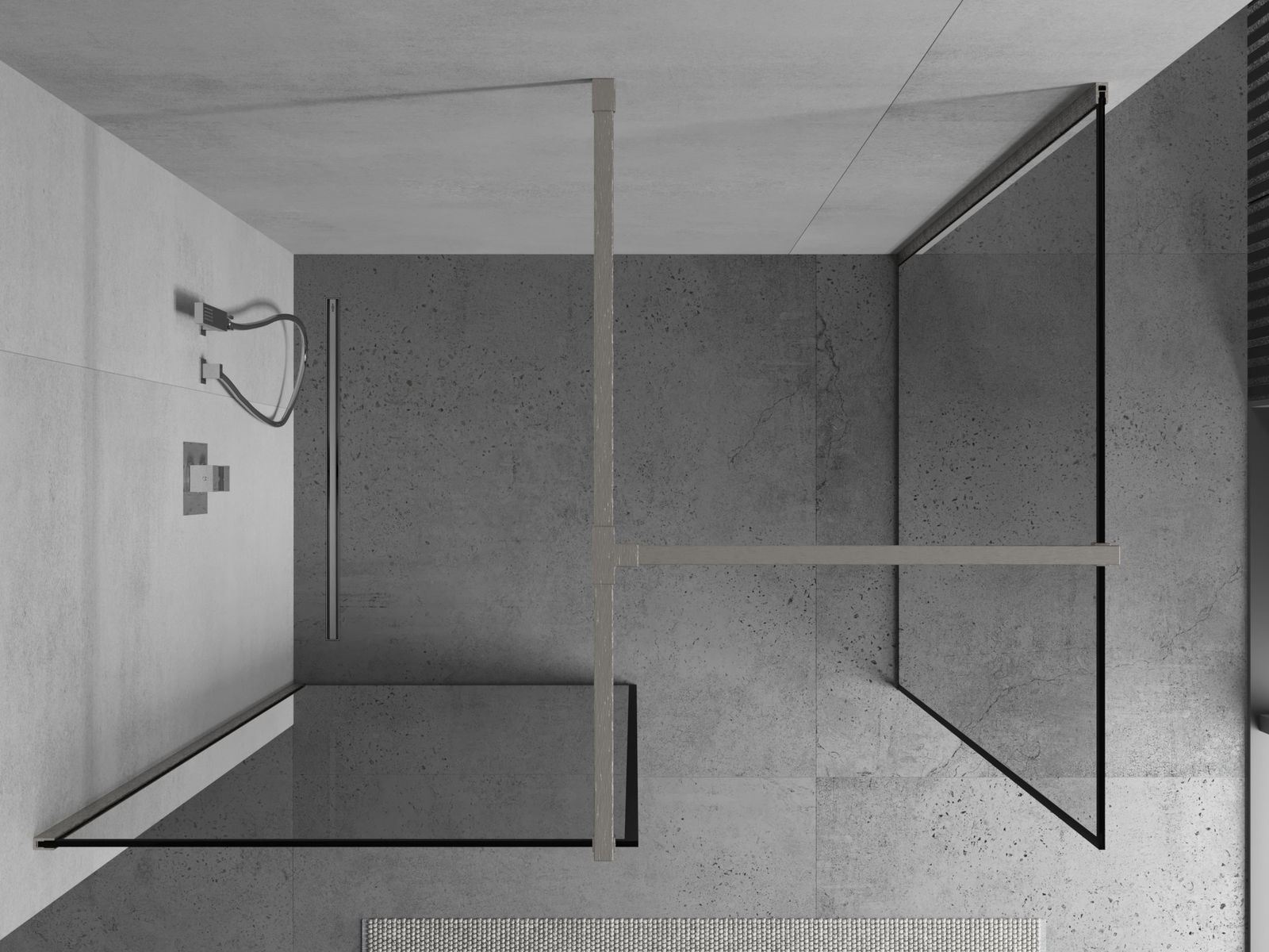 Mexen Kioto duschvägg Walk-in 150 x 100 cm, svart ram, borstad nickel - 800-150-202-97-70-100