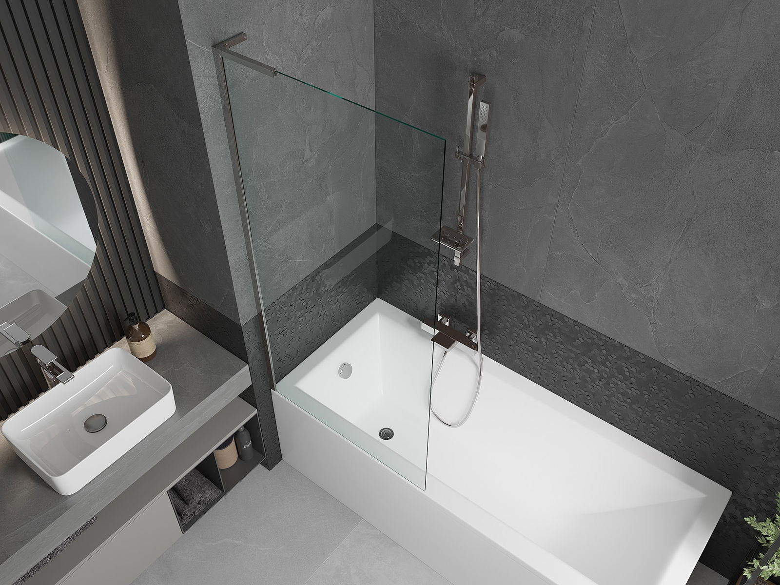 Tack vare användningen av ett universellt monteringssystem kan skärmen monteras på höger eller vänster sida, beroende på behov. På så sätt kan du enkelt utforma en dusch som passar badrummets utrymme.