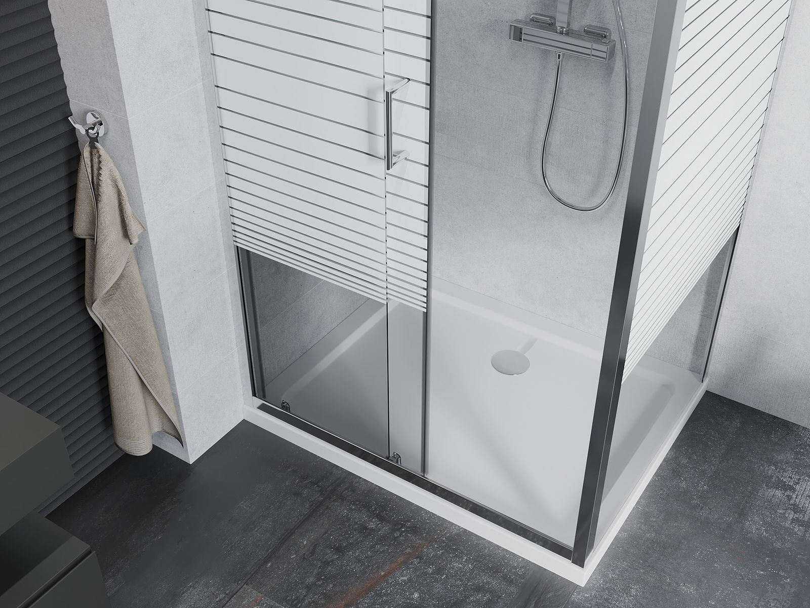 Mexen Apia skjutbar duschkabin 100 x 70 cm, vita ränder, krom + Flat-duschkar - 840-100-070-01-20-4010