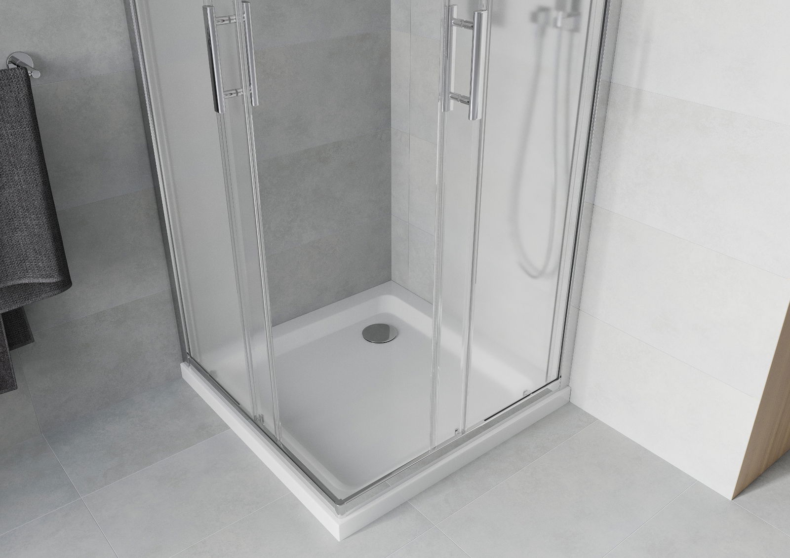 Skjutdörrar rör sig på speciella skenor och kräver inte extra utrymme för att öppnas, vilket gör dem lämpliga för mindre badrum. Tack vare dubbla rullar av hållbar plast är deras rörelse smidig.