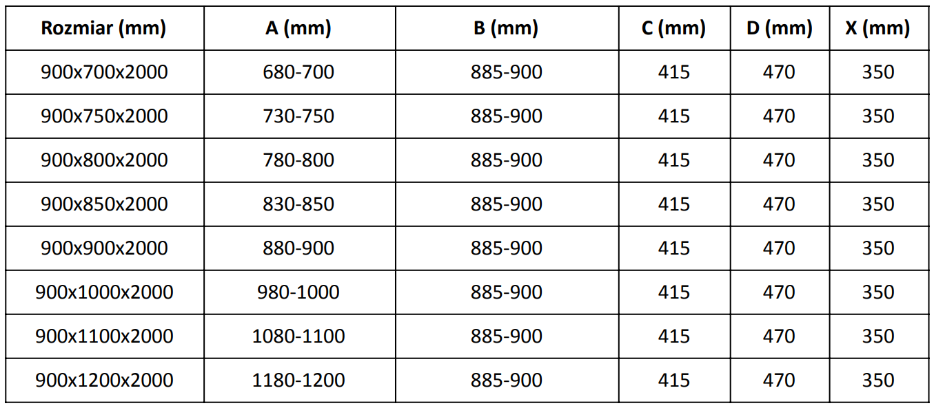 Storlek: 90x80 cm (dörr 90 cm, vägg 80 cm)