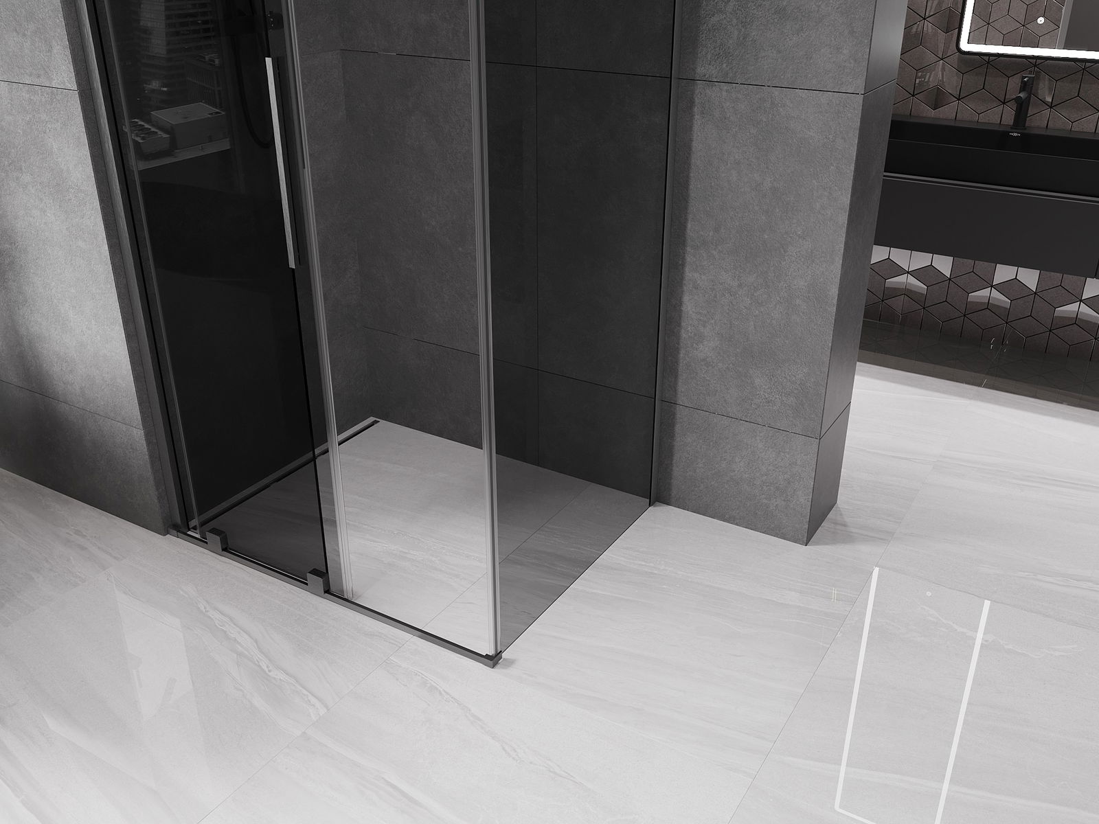 Mexen Velar skjutbart duschkabin 90 x 80 cm, grafit, borstad kanon grå - 871-090-080-41-66