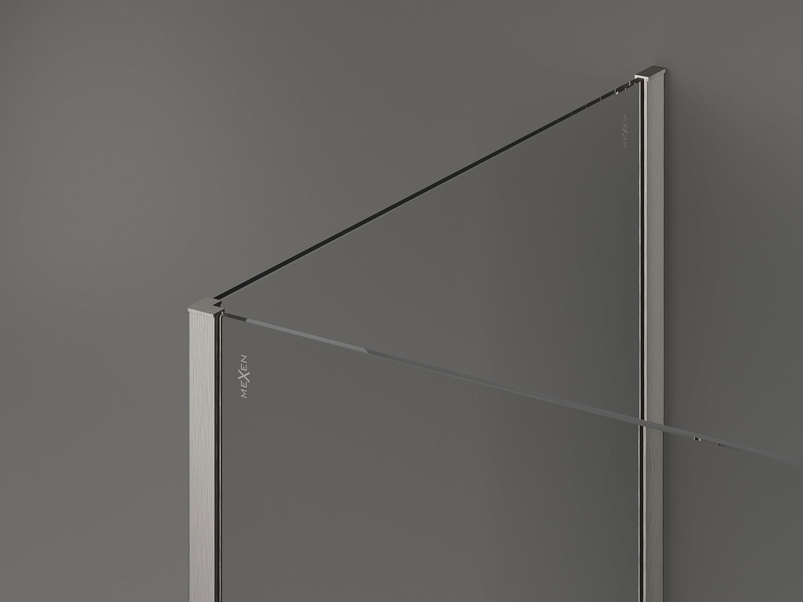 Mexen Kioto duschvägg Walk-in 90 x 80 cm, svart ram, borstad nickel - 800-090-212-97-70-080