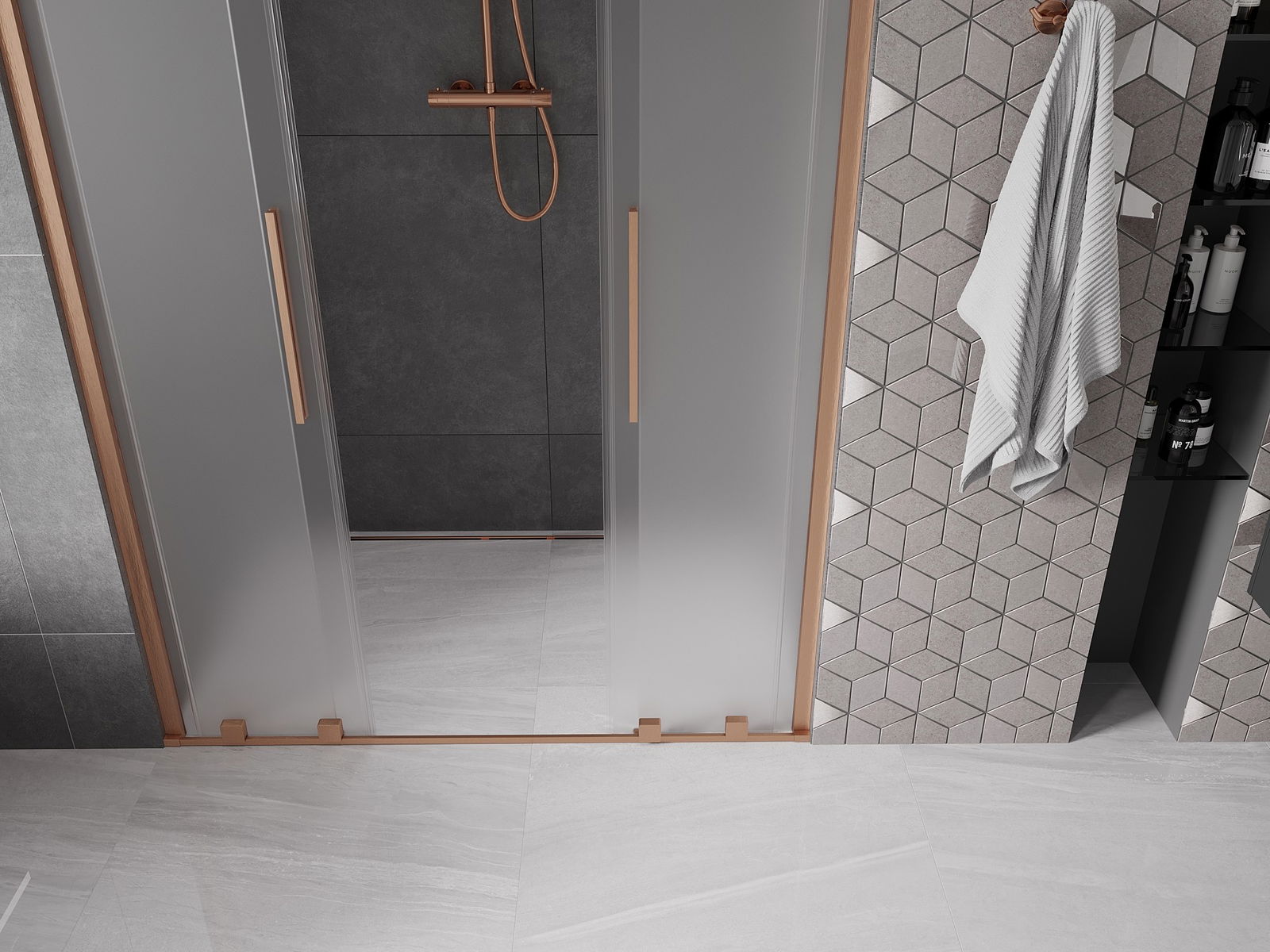 Mexen Velar Duo skjutbara duschdörrar 150 cm, frostat, borstad koppar - 871-150-000-32-65