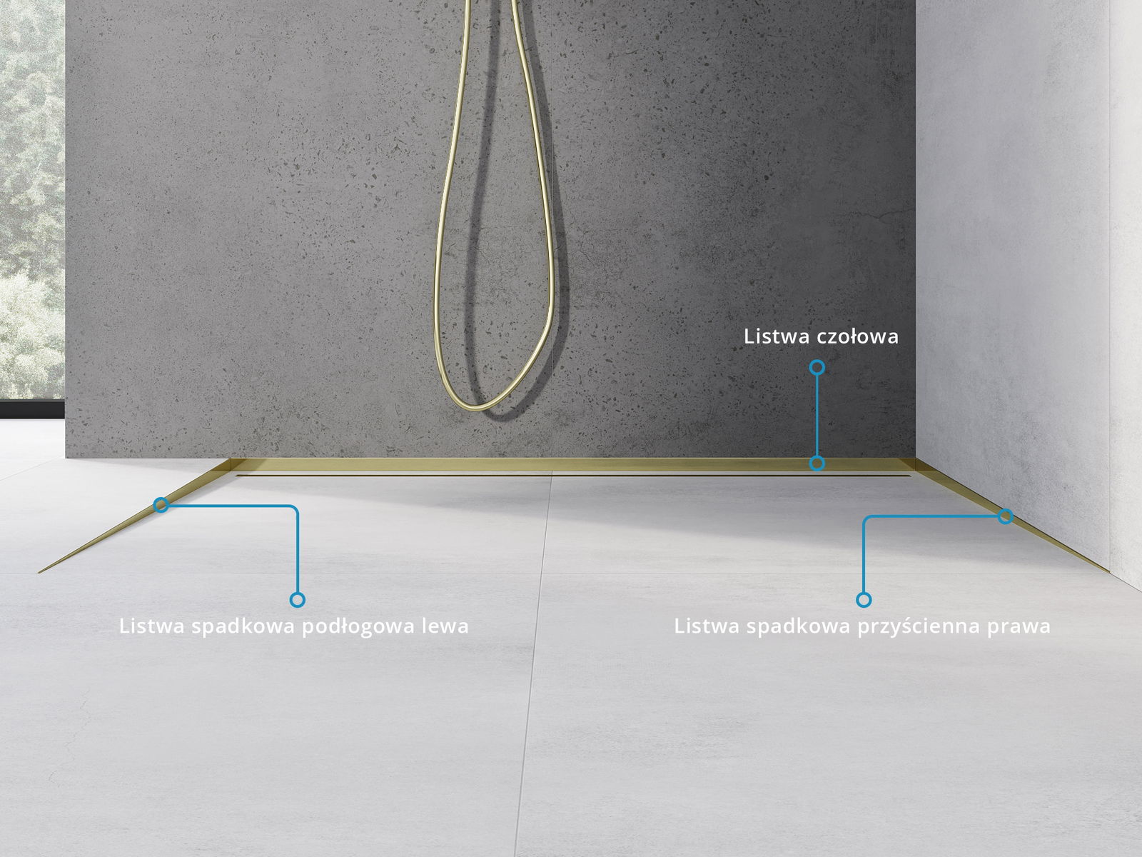 Sidokanten av listen kräver en enstaka sluttning mot den linjära avloppsrännan utan behov av att göra en så kallad kuvertanslutning