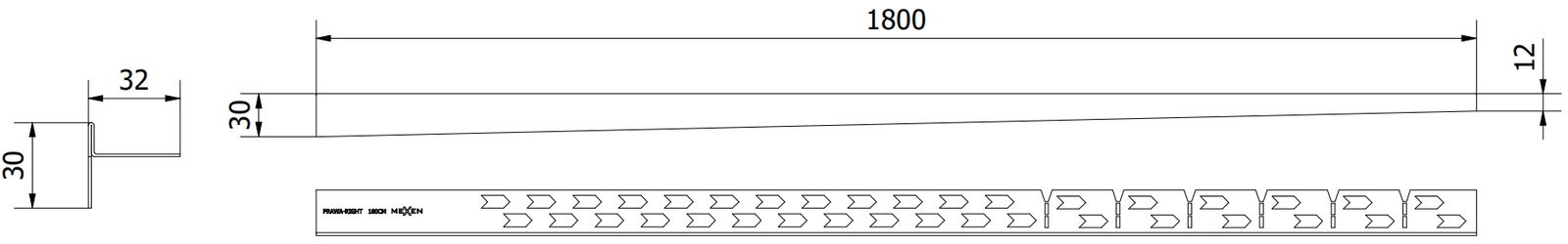 Sidokanten på listen möjliggör ensidigt fall till den linjära avloppet utan behov av att göra en s.k. kuvert