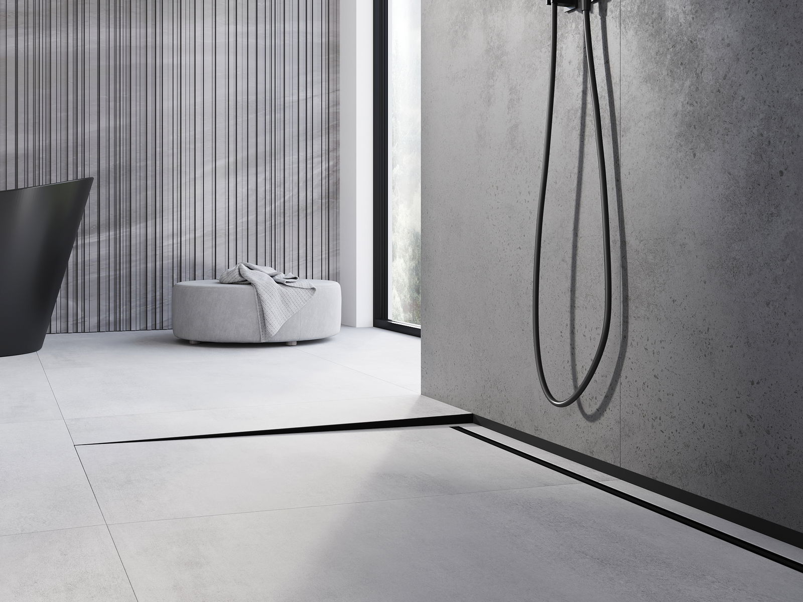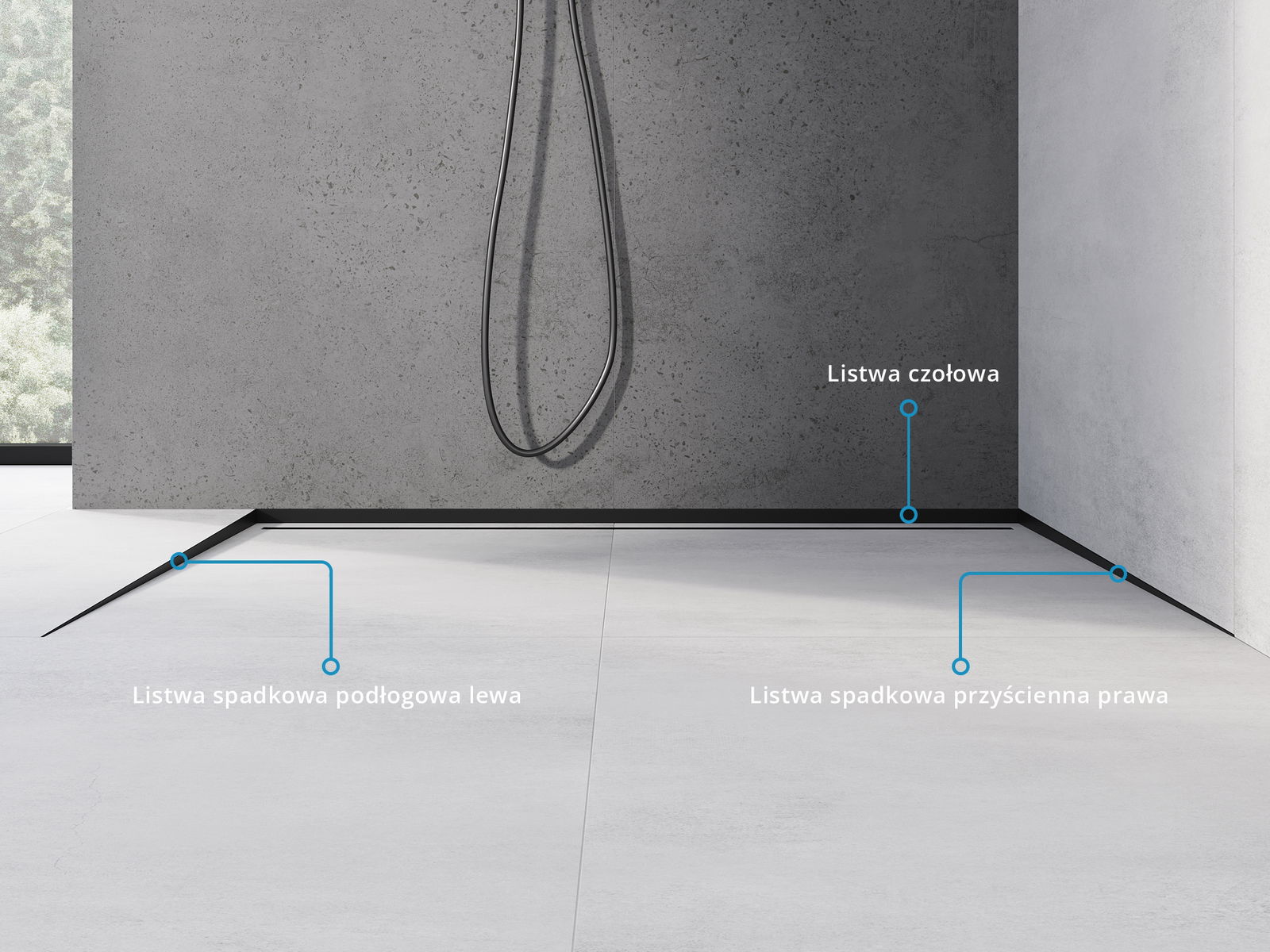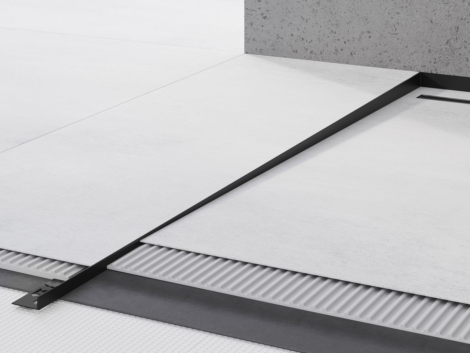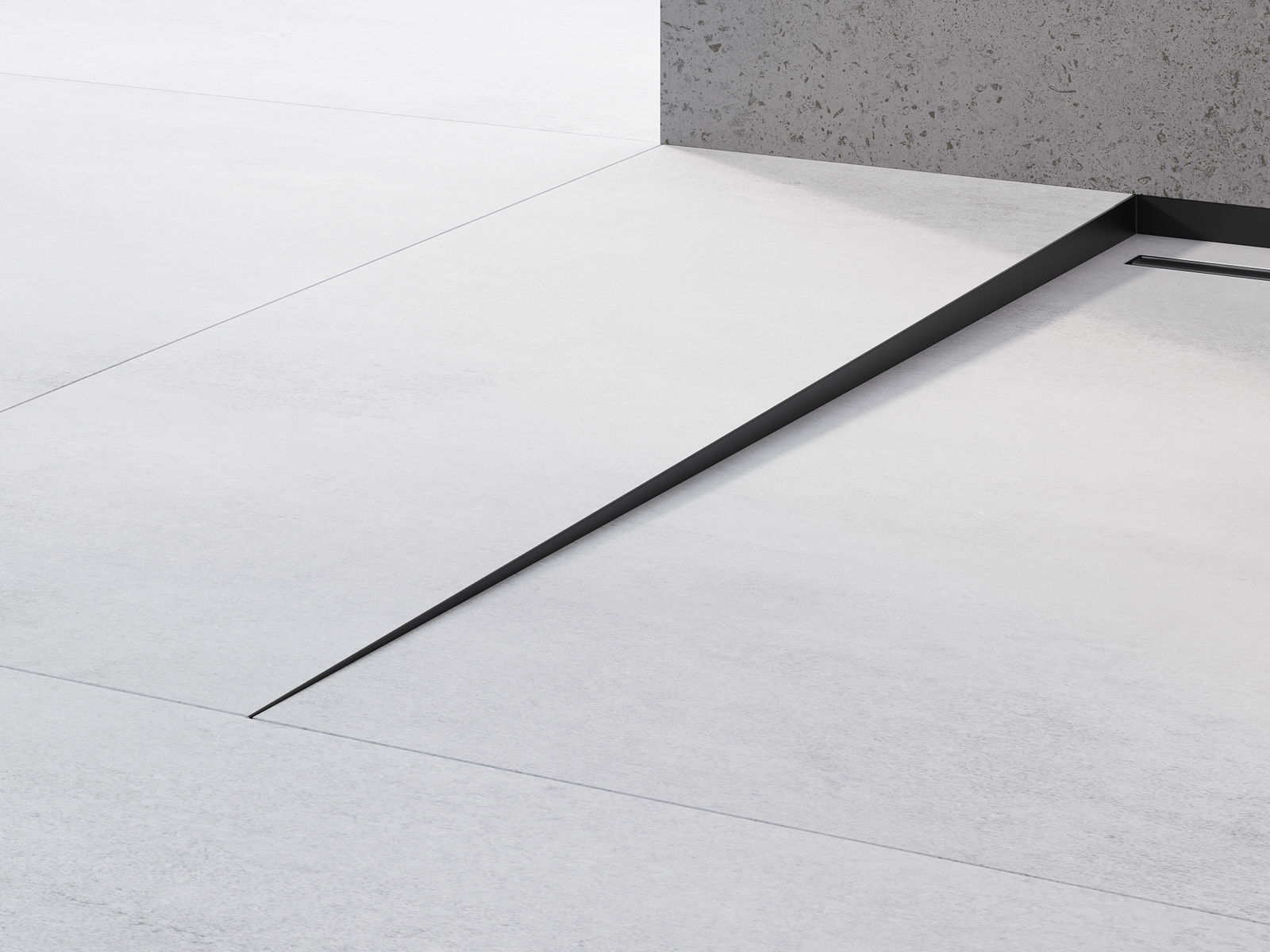 Sidokanten på listen tvingar ensidig lutning mot linjär avlopp utan behov av att göra en så kallad kuvert