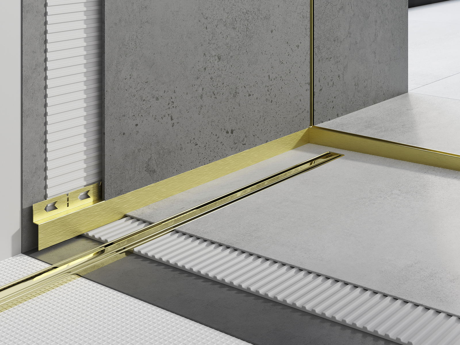 Den främre listen kompletterar användningen av lutande lister och skapar en enhetlig helhet i duschutrymmet