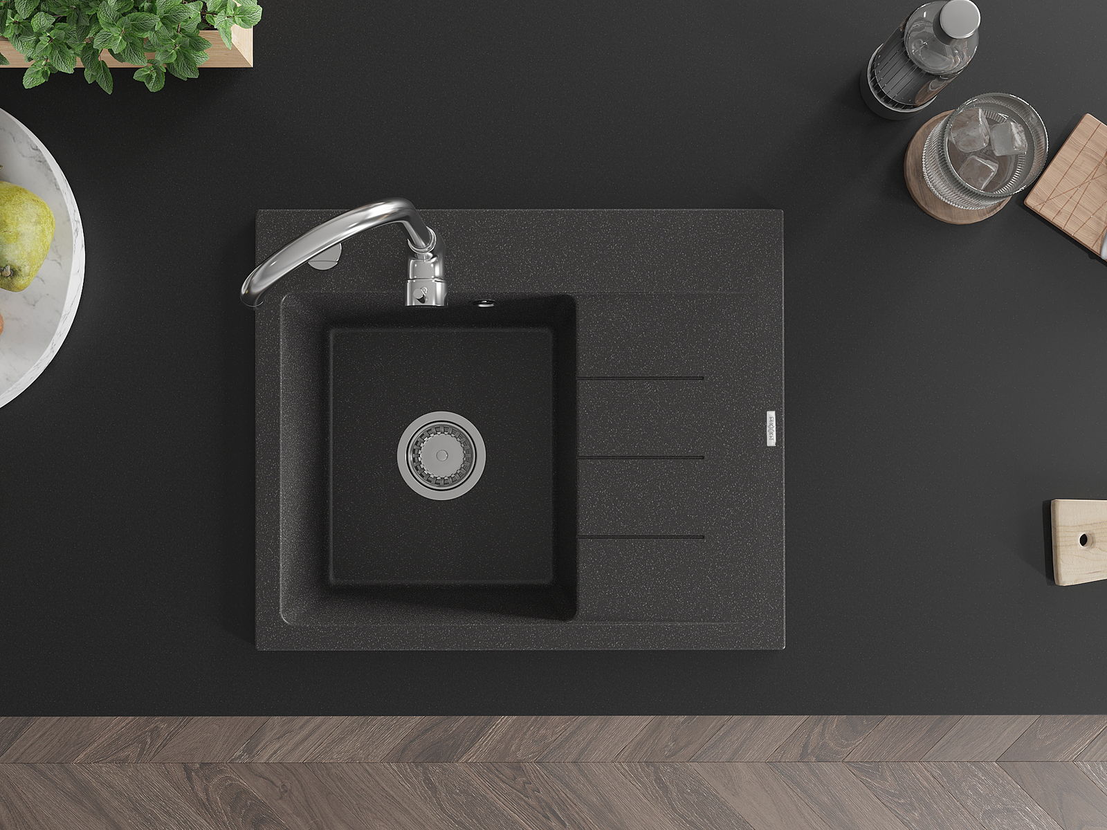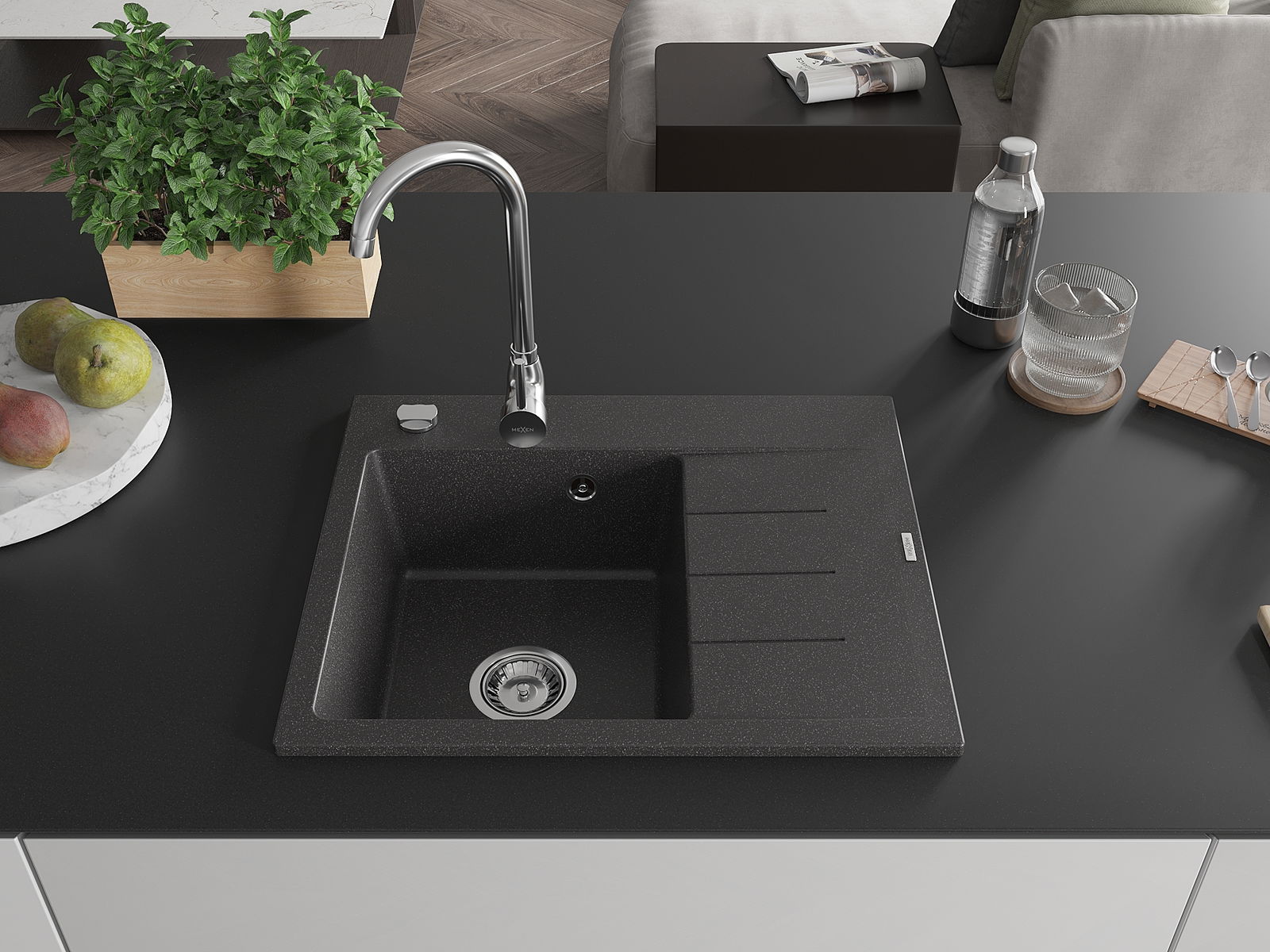 Mexen Ben granitdiskho med 1 ho och avrinningsyta, vänster 600 x 500 mm, svart med stänk, kromsifon - 6522605000-76