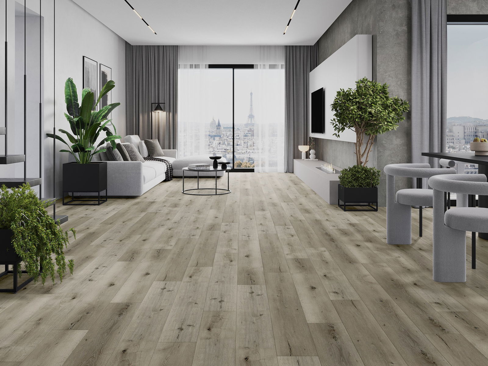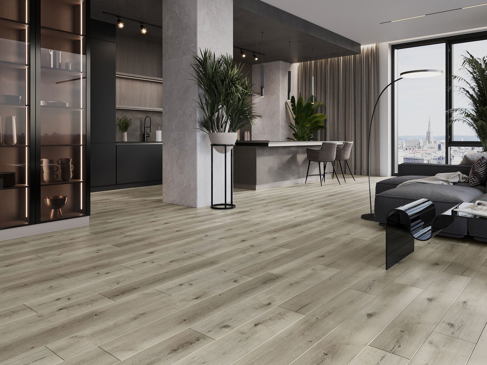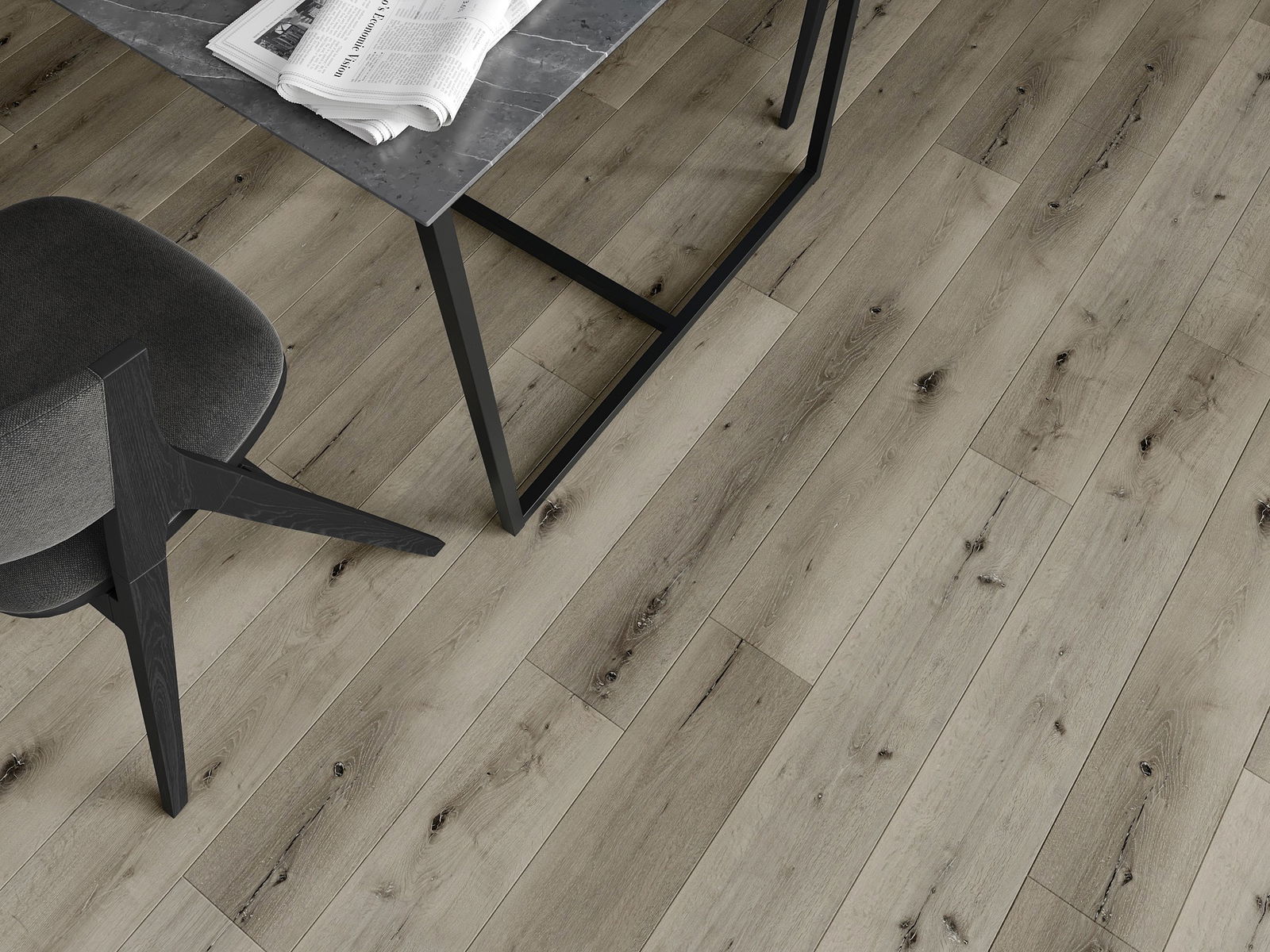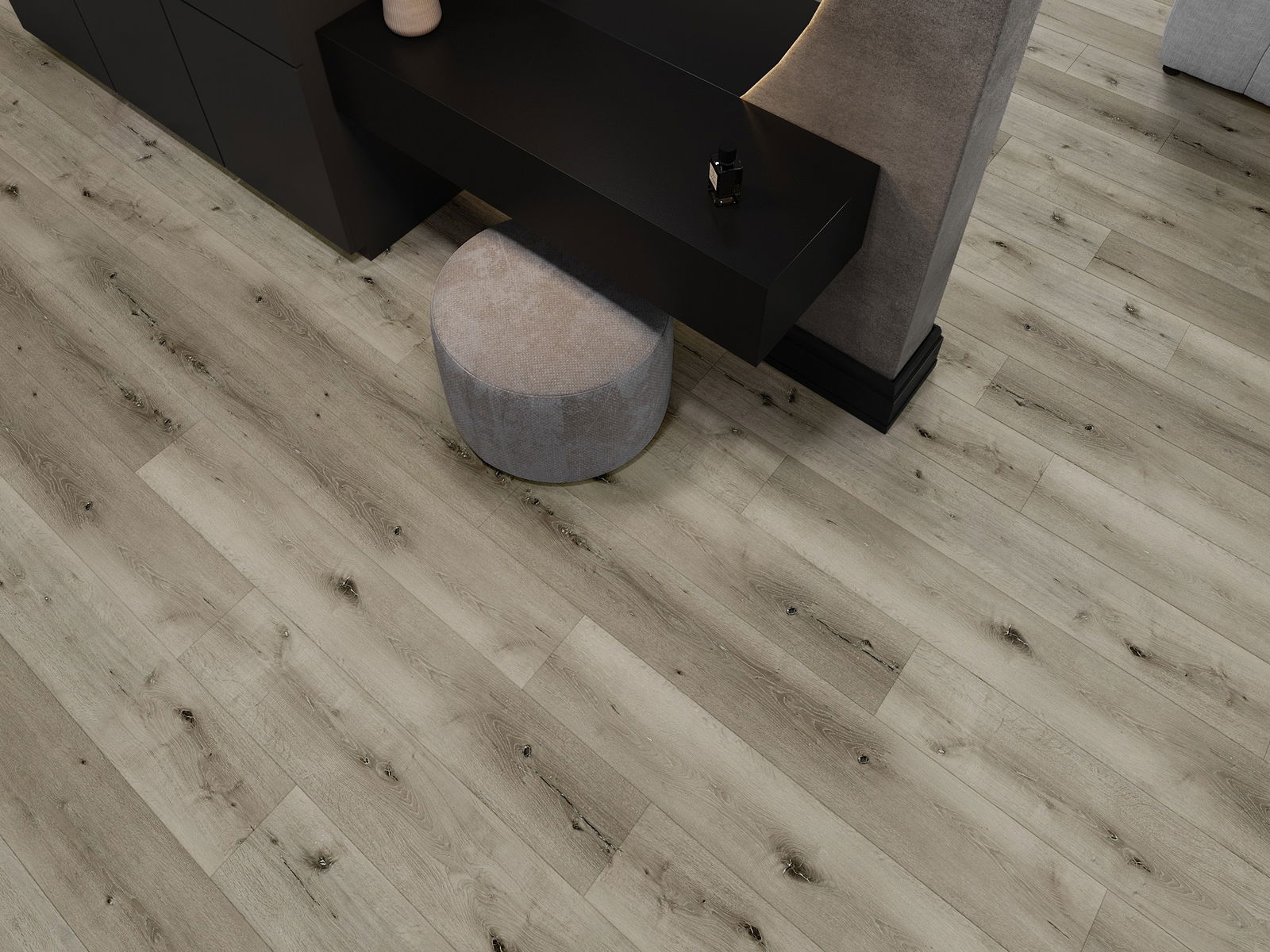 Panelerna har en 4-sidig fog - varje sida har frästs på ett sådant sätt att en V-formad fog skapas när de läggs. Denna design gör att golvet får en tydligare struktur, vilket ger det djup och estetisk karaktär. Denna effekt är särskilt uppskattad i moderna inredningar, där detaljerna betonar interiörens unika utseende.