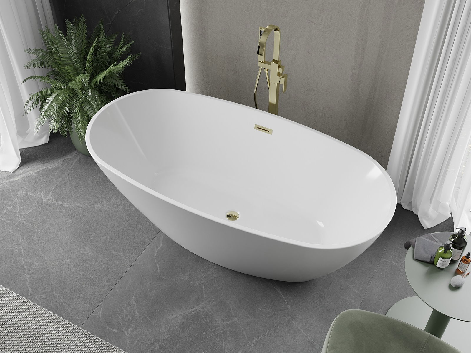 Mexen Eris fristående badkar 180 x 95 cm, vit, översvämning guld - 53441809500-50