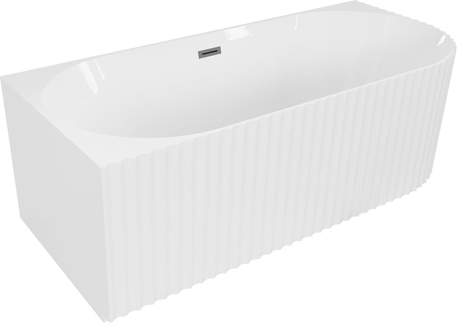 Mexen Gia fristående hörnbadkar räfflat vänster 150 x 75 cm, vit glans, överfyllnad gun metal - 52701507500L-95