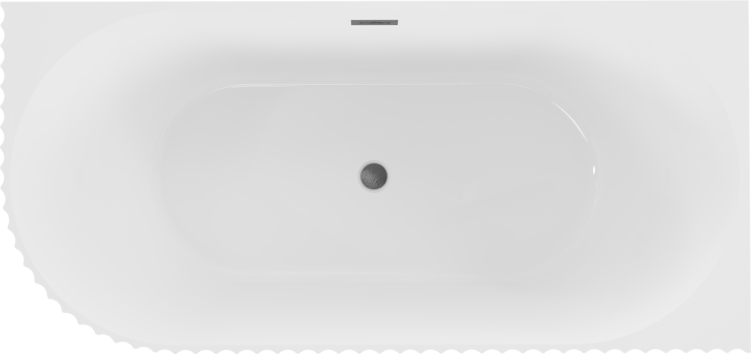 Mexen Gia fristående hörnbadkar med räfflor höger 150 x 75 cm, vit glans, overflow gun gray borstad - 52701507500P-66
