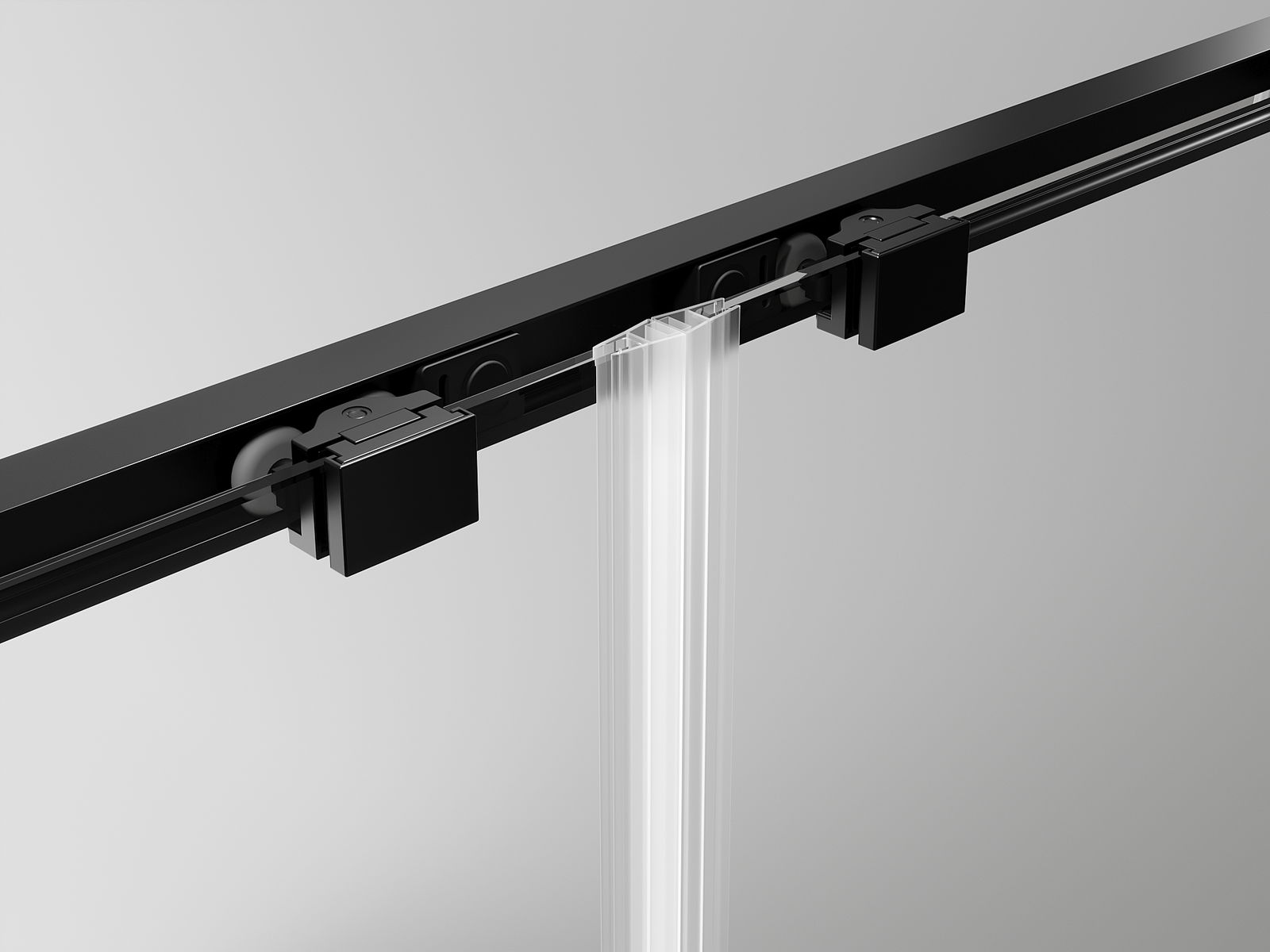 Skjutdörrar rör sig längs specialguider och kräver inget extra utrymme för att öppnas, vilket gör dem lämpliga för mindre badrum. Tack vare de dubbla rullarna med metallhölje är deras rörelse smidig.