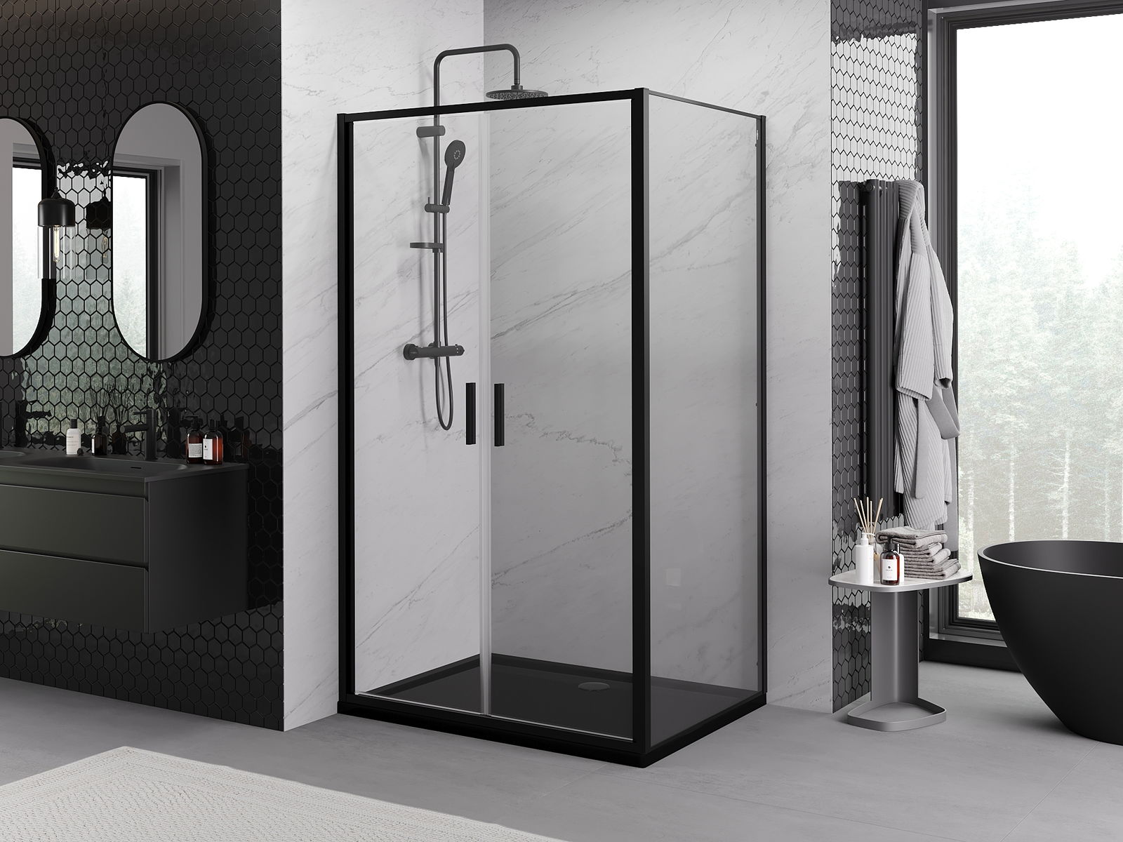 Mexen Rio fyrkantig duschkabin 90 x 90 cm, transparent, svart - 860-090-090-70-00