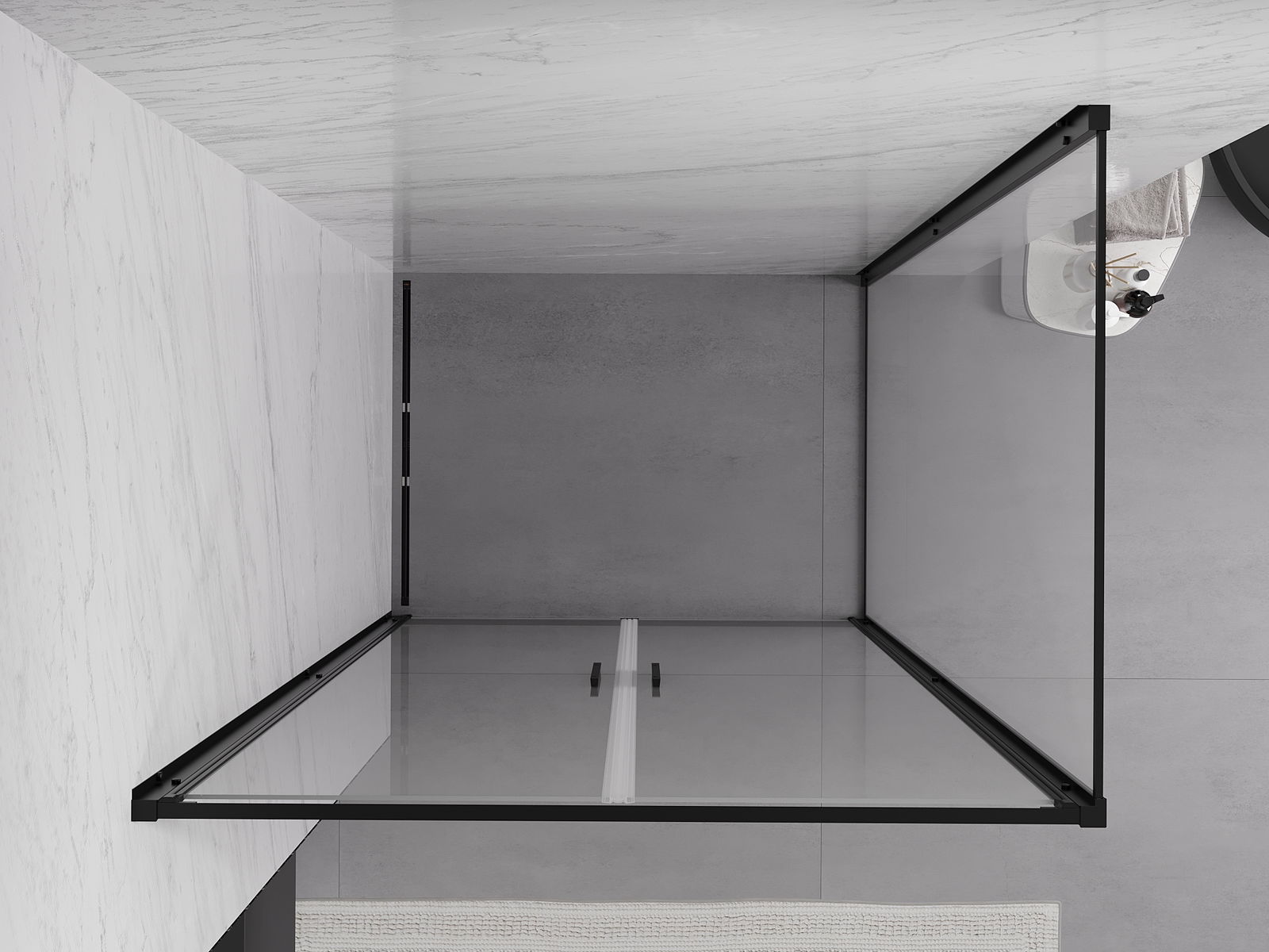 Det praktiska och bekväma handtaget är tillverkat av hållbar och tålig metall. Den moderna formen i kombination med en finish som matchar profilernas färg ger helheten ett modernt och stilfullt utseende, samtidigt som det framhäver estetiken i varje badrum.