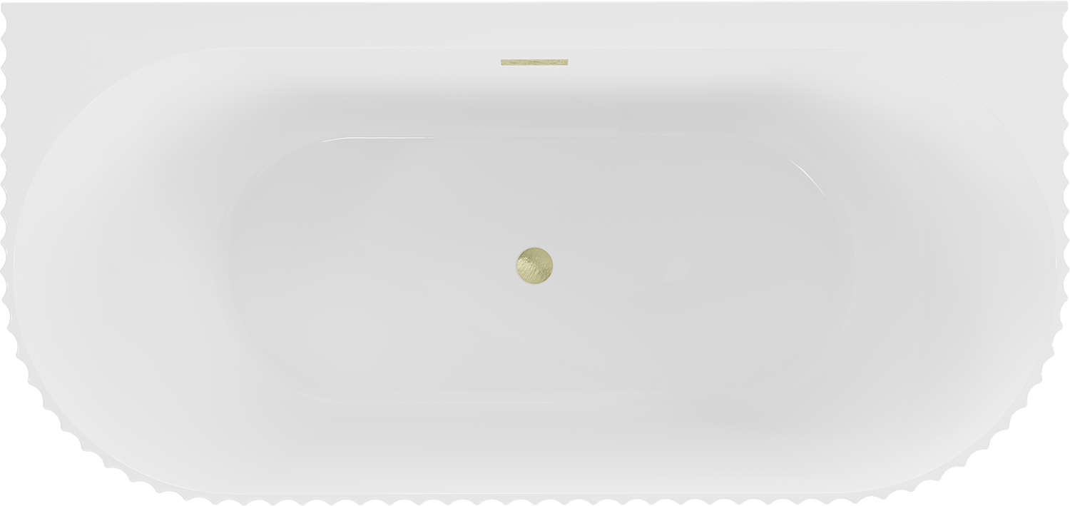Mexen Sella fristående väggmonterat räfflat badkar 150 x 75 cm, vit med glans, guldöverflöde borstat - 52711507500-55