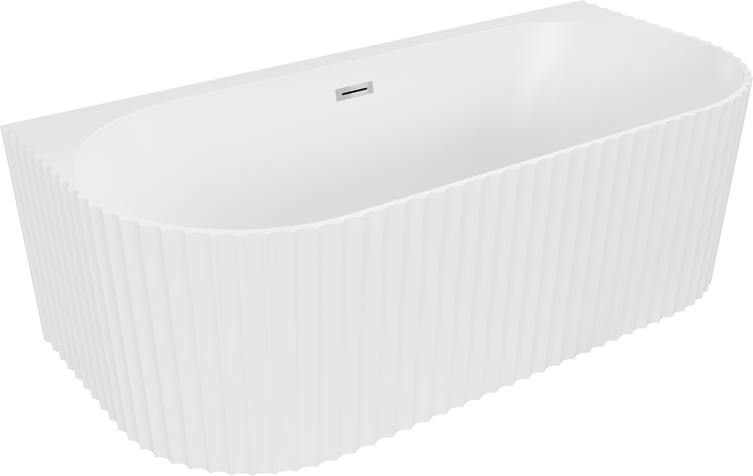 Mexen Sella fristående väggmonterat räfflat badkar 150 x 75 cm, vit matt, krom överflöde - 52711507501-01