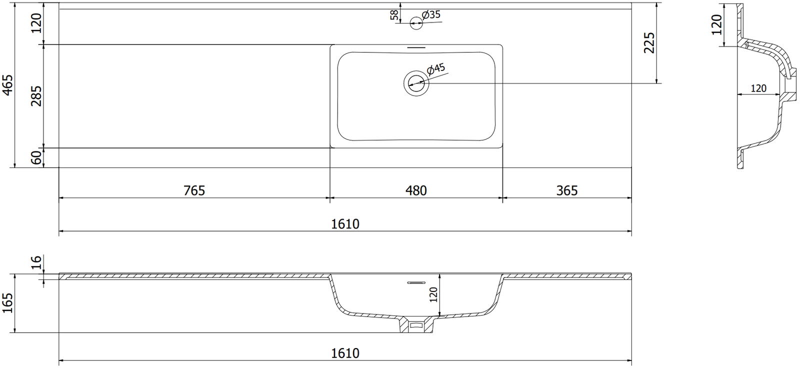 Mexen Otis inbyggd tvättställ höger 161 x 46,5 cm, svart matt - 25181671P