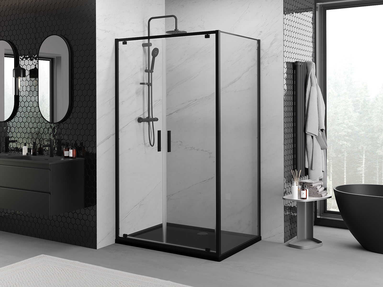 Mexen Rio fyrkantig duschkabin 90 x 90 cm, transparent, svart - 860-090-090-70-00