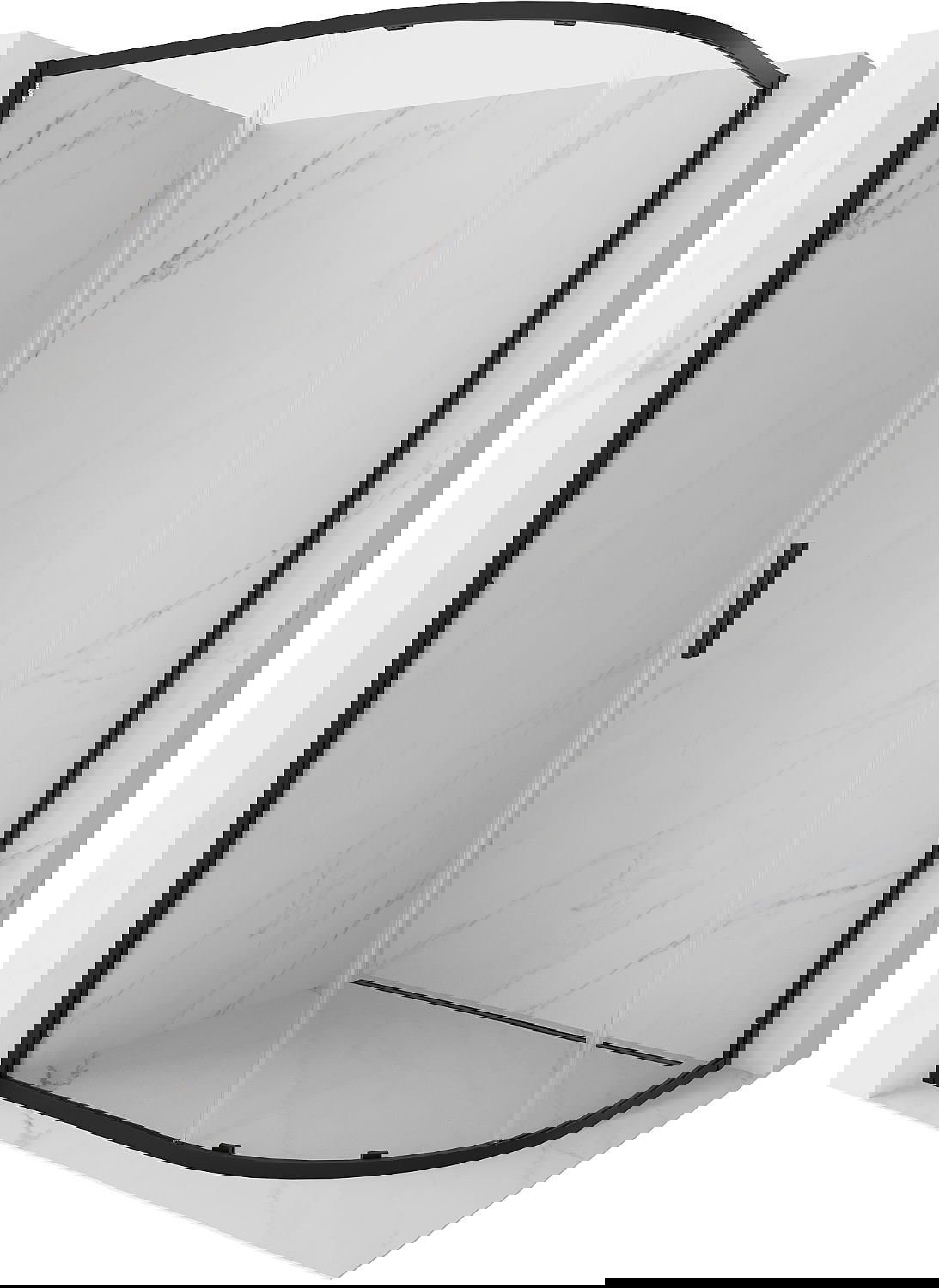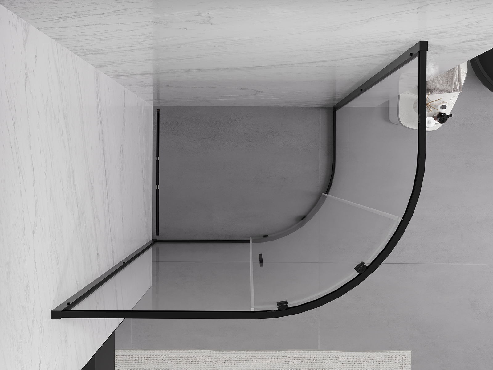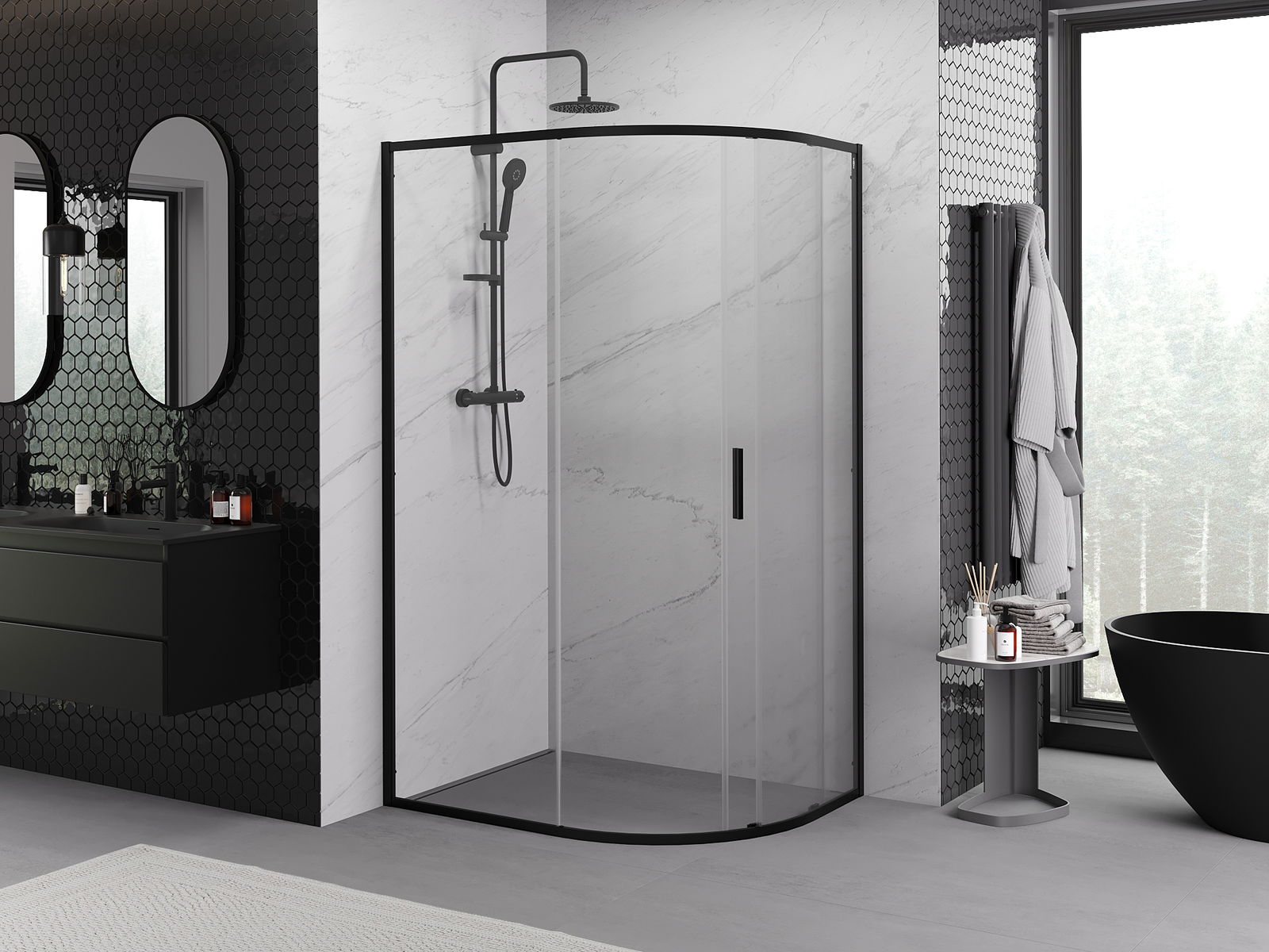 Mexen Exo asymmetrisk halvcirkelformad duschkabin med skjutdörr 90 x 80 cm, transparent, svart - 8131-090-080-70-00