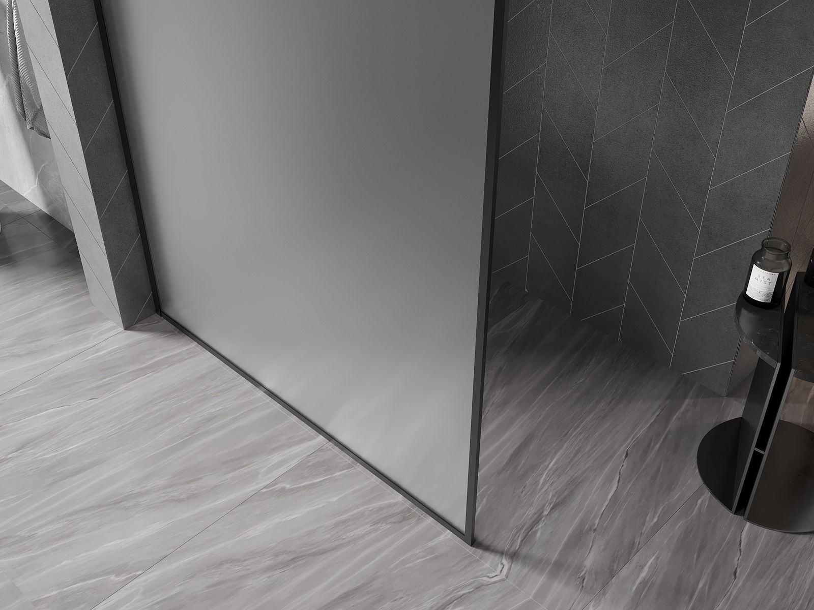 Mexen Kioto-F duschvägg Walk-in med ram 80 x 202 cm, frost 8 mm, svart - 800-080-104-70-30
