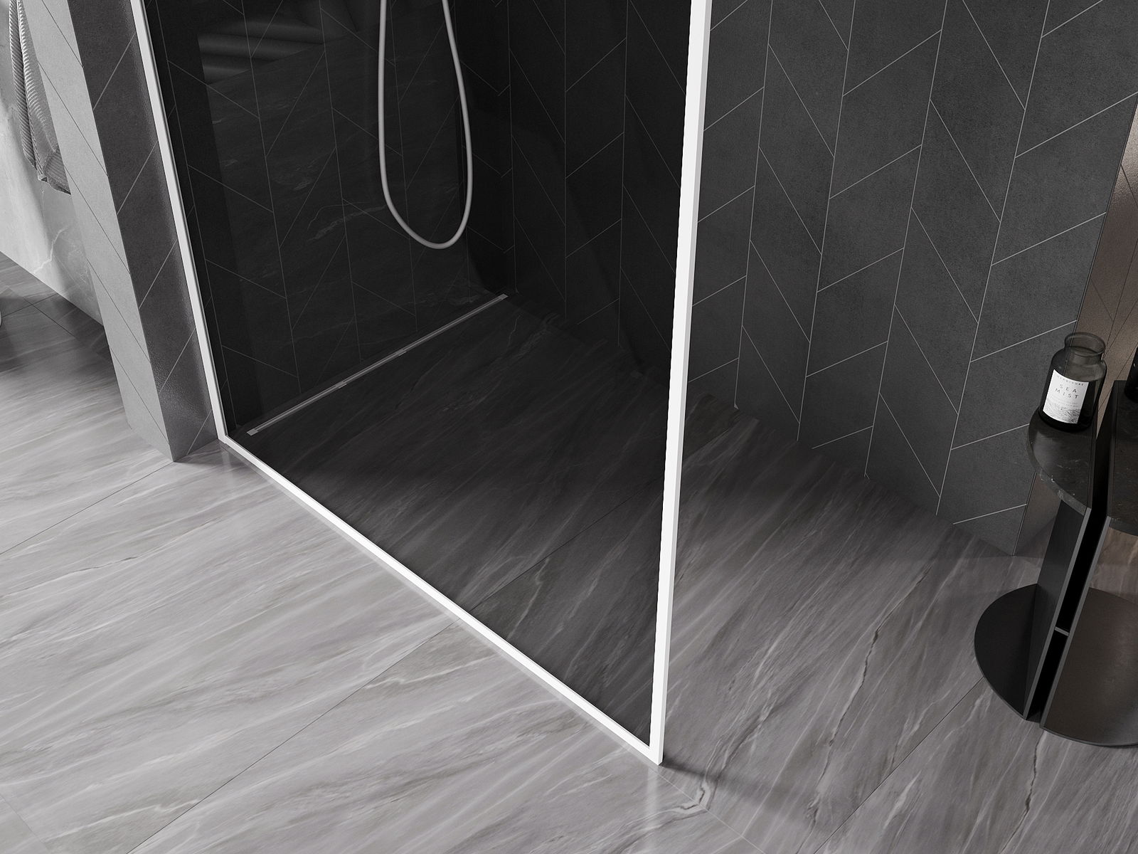 Mexen Kioto-F Walk-in duschvägg med ram 140 x 202 cm, grafit 8 mm, vit - 800-140-104-20-40