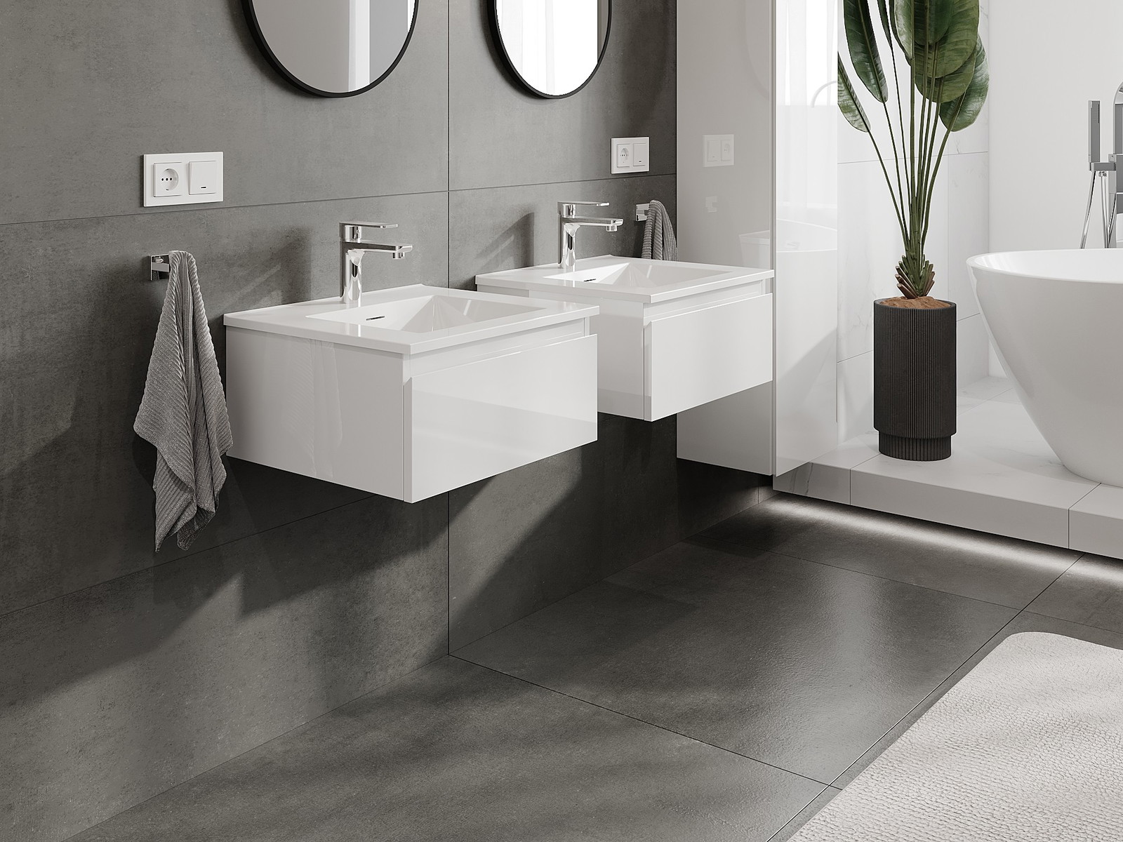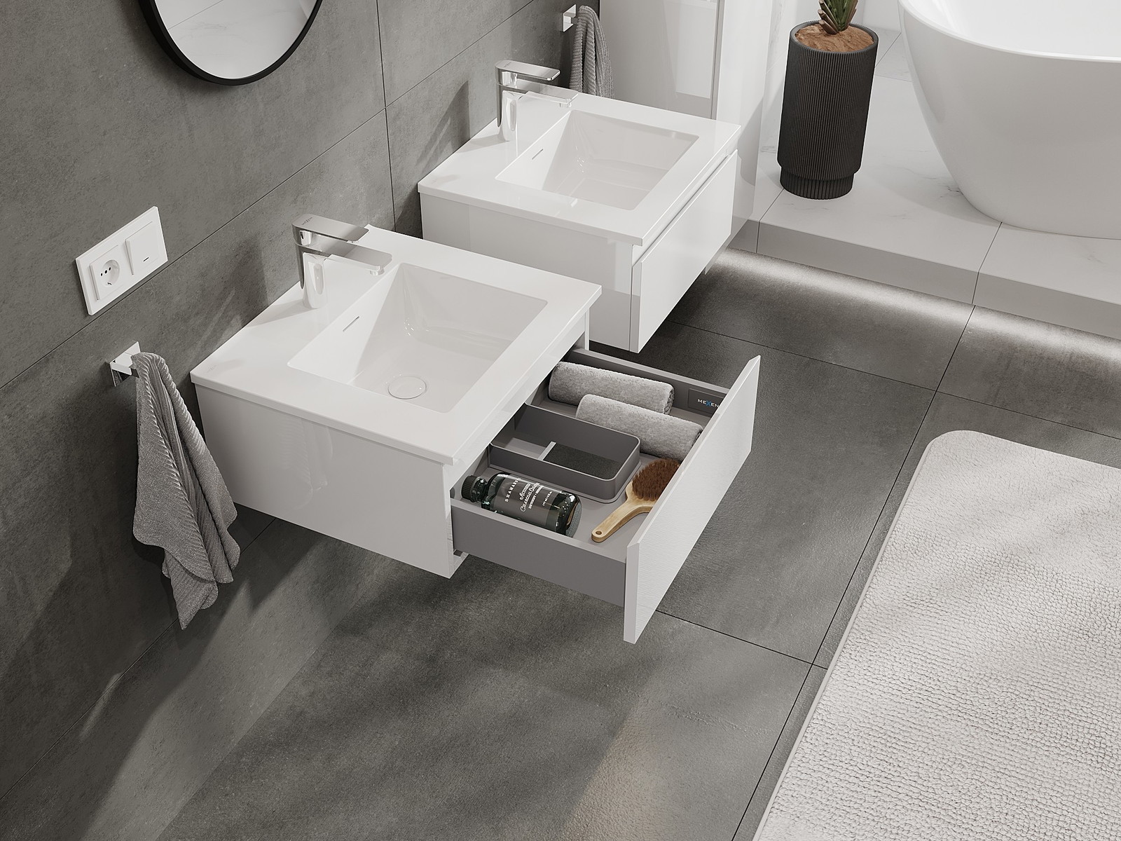 Våra modulära badrumsmöbler kan kombineras i olika färgkonfigurationer, vilket möjliggör fullständig personalisering. Du kan välja både utseende och funktioner för respektive delar, vilket gör att möblerna kan anpassas till dina egna stilistiska och funktionella preferenser.
