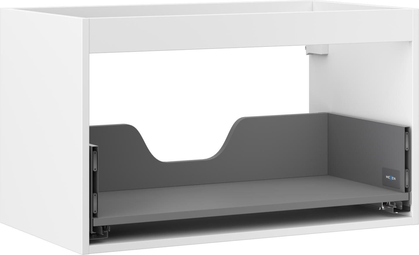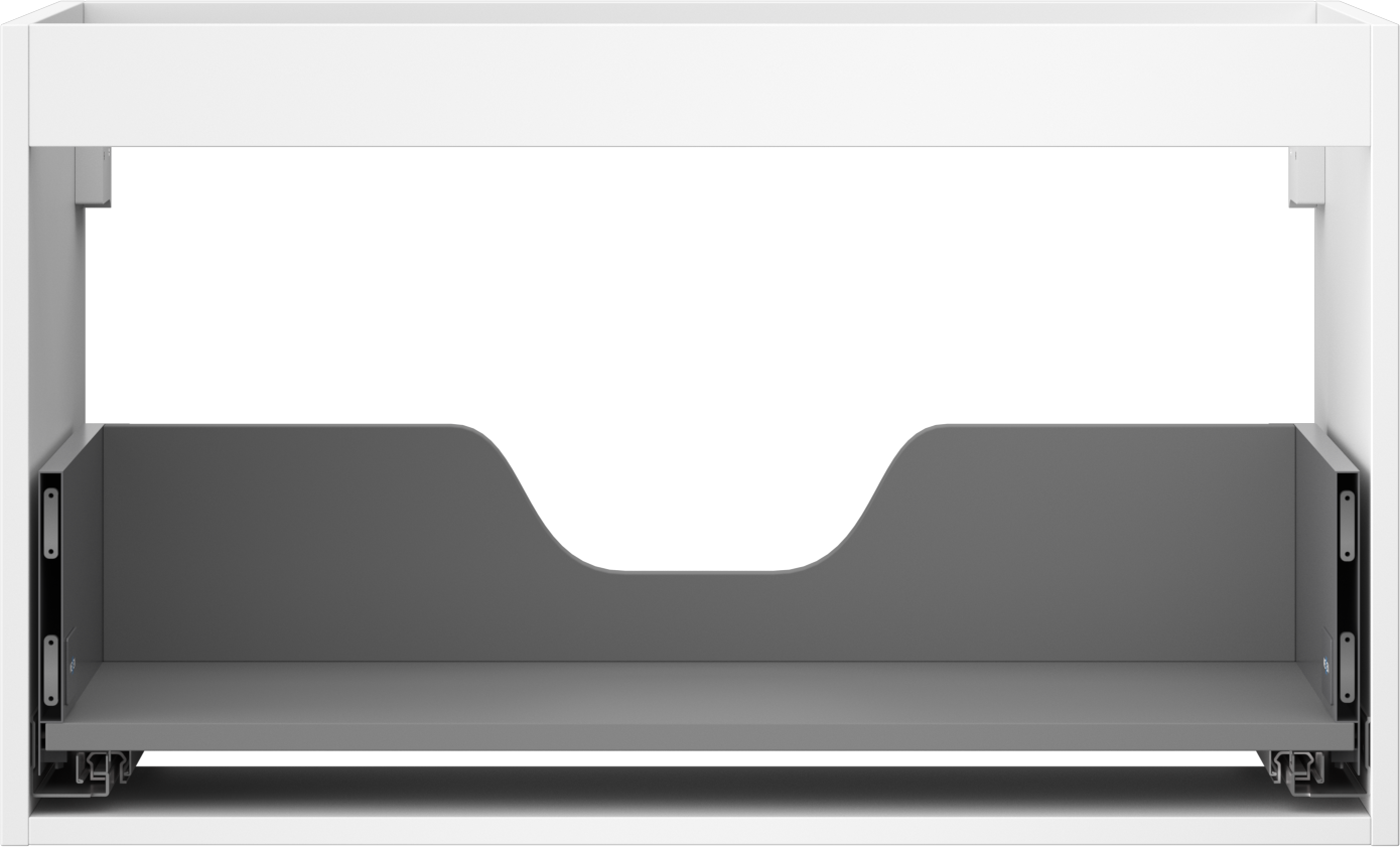 Utskärningen i lådan är utformad på ett sådant sätt att den rymmer vattenlåset som är nödvändigt i tvättställsinstallationer. Tack vare detta kan möbeln installeras fullt ut funktionellt, utan att behöva avstå från utrymme i lådan för installationen.