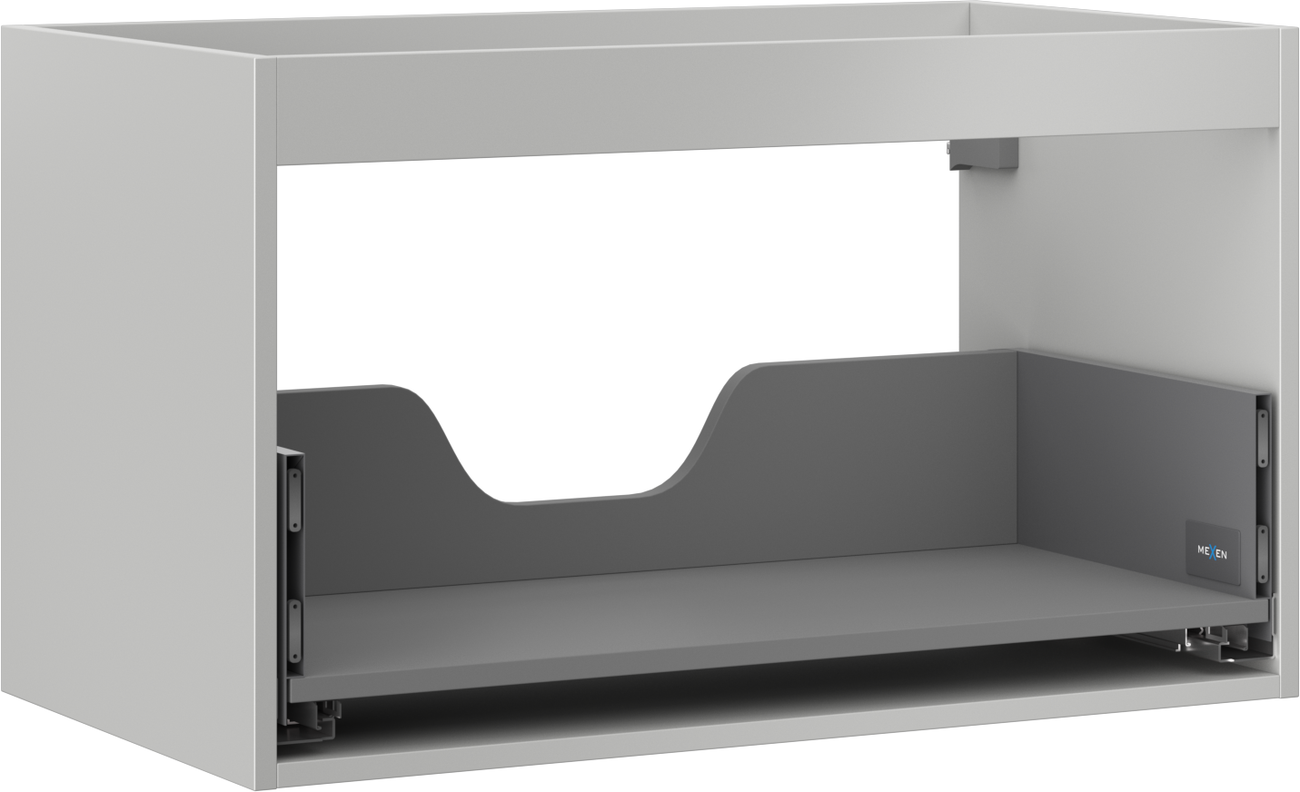Utskärningen i lådan är utformad på ett sådant sätt att den rymmer vattenlåset som är nödvändigt i tvättställsinstallationer. Tack vare detta kan möbeln installeras fullt ut funktionellt, utan att behöva avstå från utrymme i lådan för installationen.