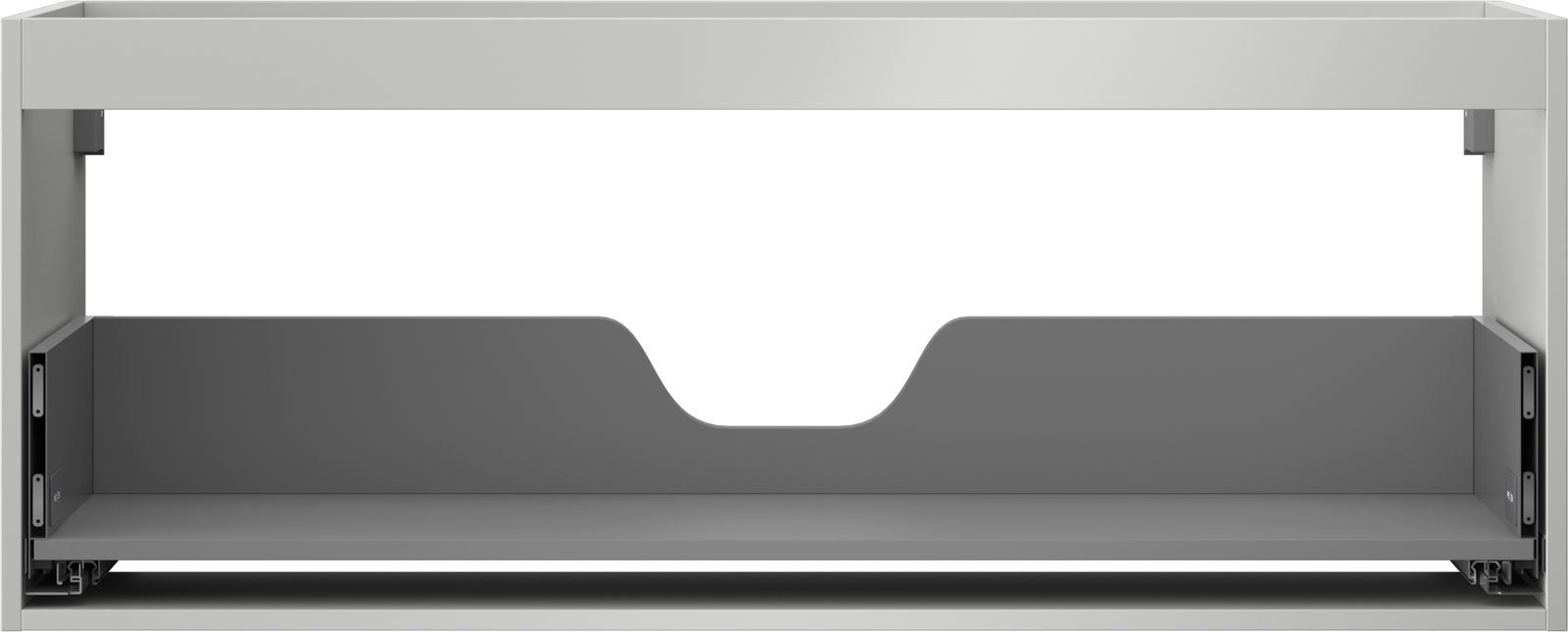 Utskärningen i lådan är utformad på ett sådant sätt att den rymmer vattenlåset som är nödvändigt i tvättställsinstallationer. Tack vare detta kan möbeln installeras fullt ut funktionellt, utan att behöva avstå från utrymme i lådan för installationen.