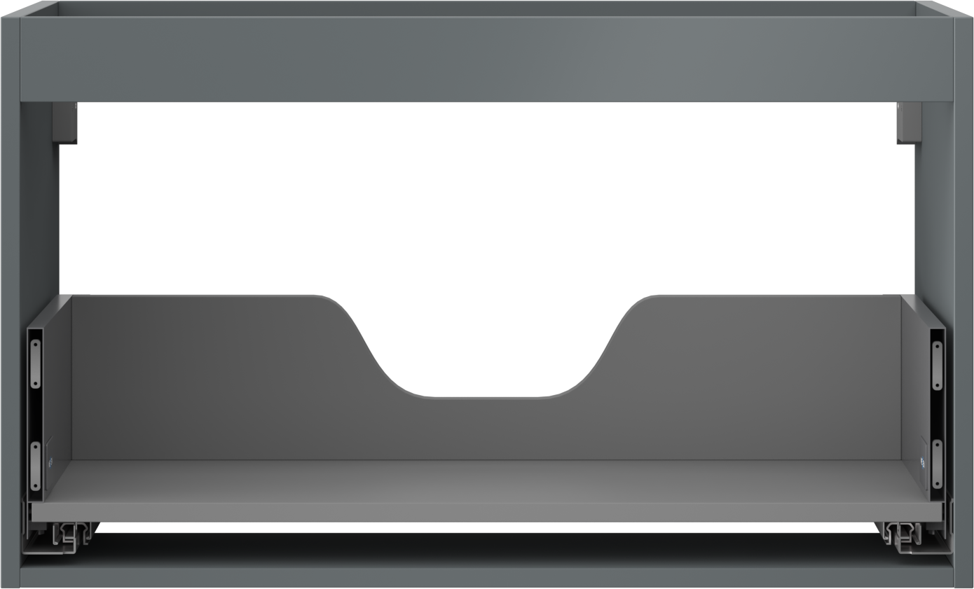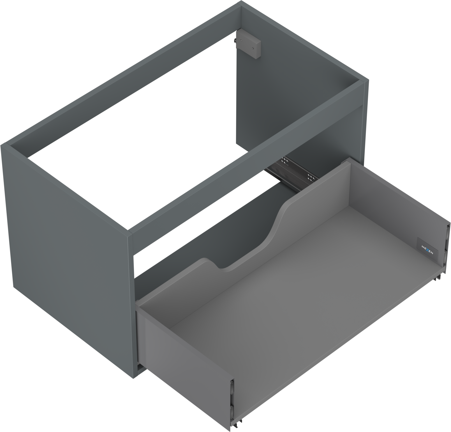 Utskärningen i lådan är utformad på ett sådant sätt att den rymmer vattenlåset som är nödvändigt i tvättställsinstallationer. Tack vare detta kan möbeln installeras fullt ut funktionellt, utan att behöva avstå från utrymme i lådan för installationen.