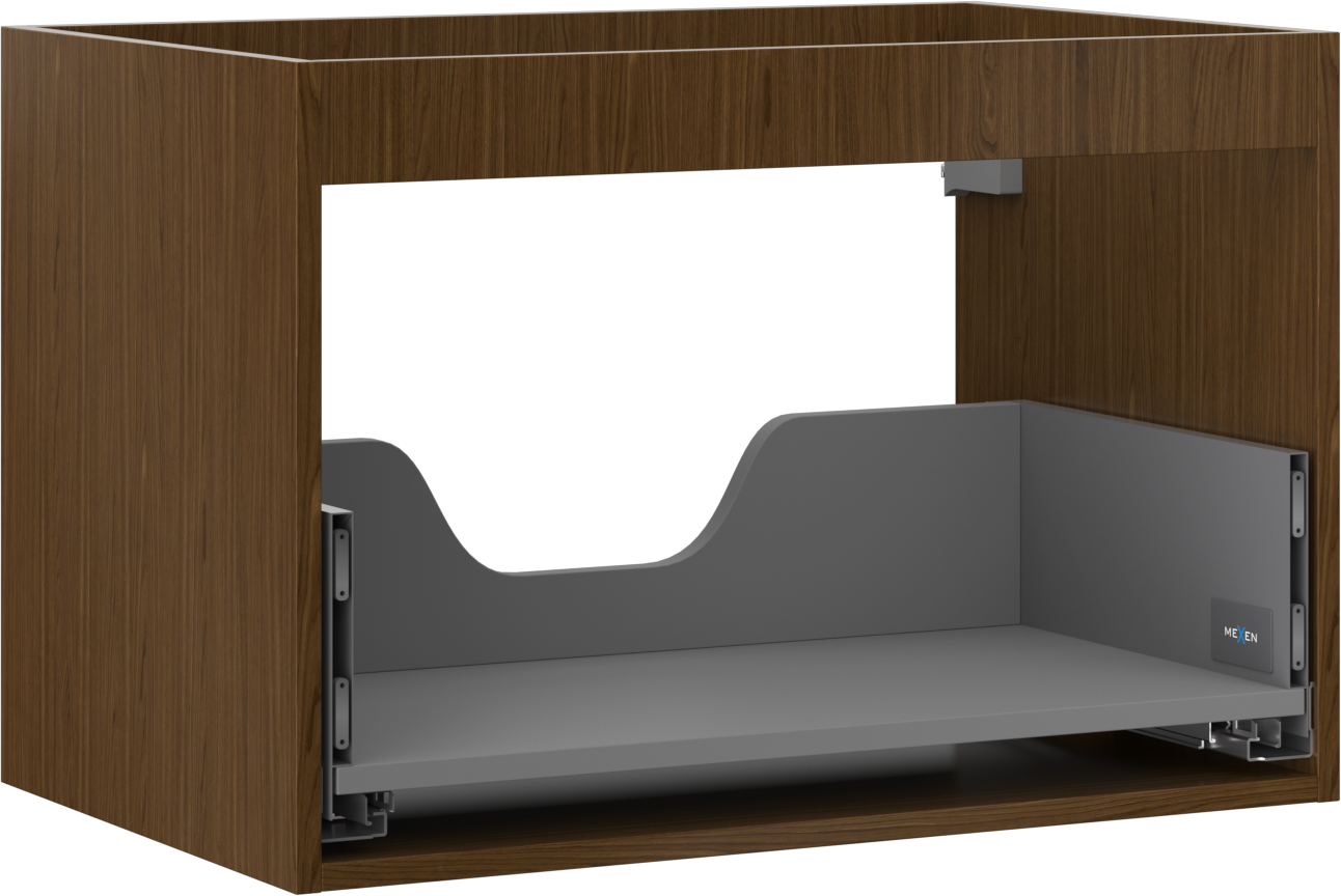 Utskärningen i lådan är utformad på ett sådant sätt att den rymmer vattenlåset som är nödvändigt i tvättställsinstallationer. Tack vare detta kan möbeln installeras fullt ut funktionellt, utan att behöva avstå från utrymme i lådan för installationen.
