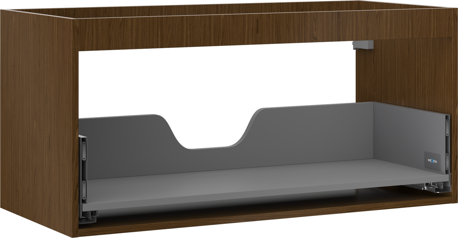 Utskärningen i lådan är utformad på ett sådant sätt att den rymmer vattenlåset som är nödvändigt i tvättställsinstallationer. Tack vare detta kan möbeln installeras fullt ut funktionellt, utan att behöva avstå från utrymme i lådan för installationen.