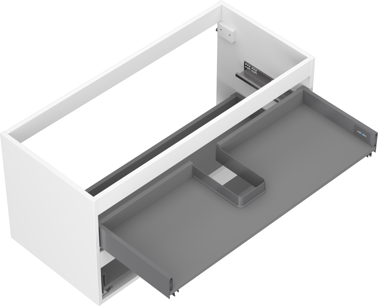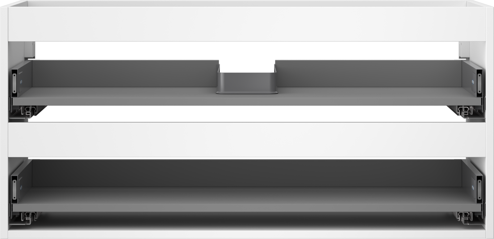 Utskärningen i lådan är utformad på ett sådant sätt att den rymmer vattenlåset som är nödvändigt i tvättställsinstallationer. Tack vare detta kan möbeln installeras fullt ut funktionellt, utan att behöva avstå från utrymme i lådan för installationen.