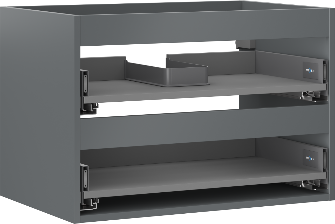 Utskärningen i lådan är utformad på ett sådant sätt att den rymmer vattenlåset som är nödvändigt i tvättställsinstallationer. Tack vare detta kan möbeln installeras fullt ut funktionellt, utan att behöva avstå från utrymme i lådan för installationen.