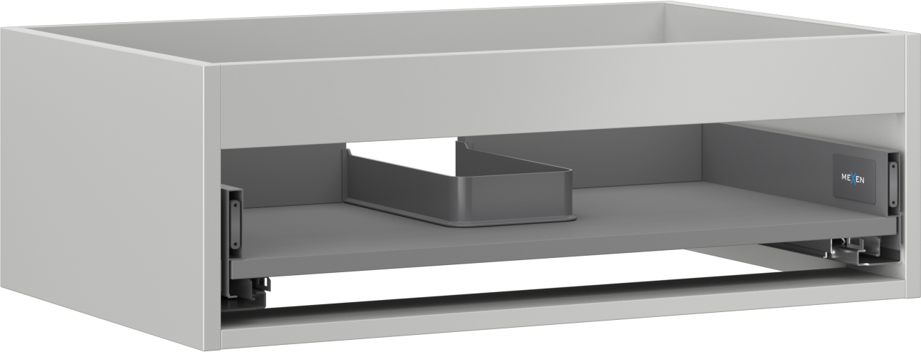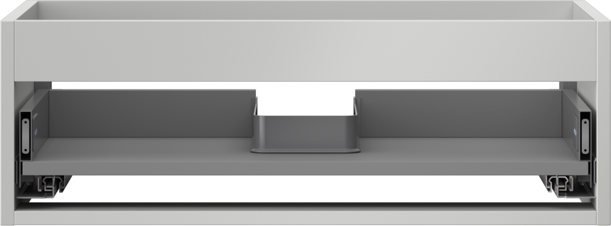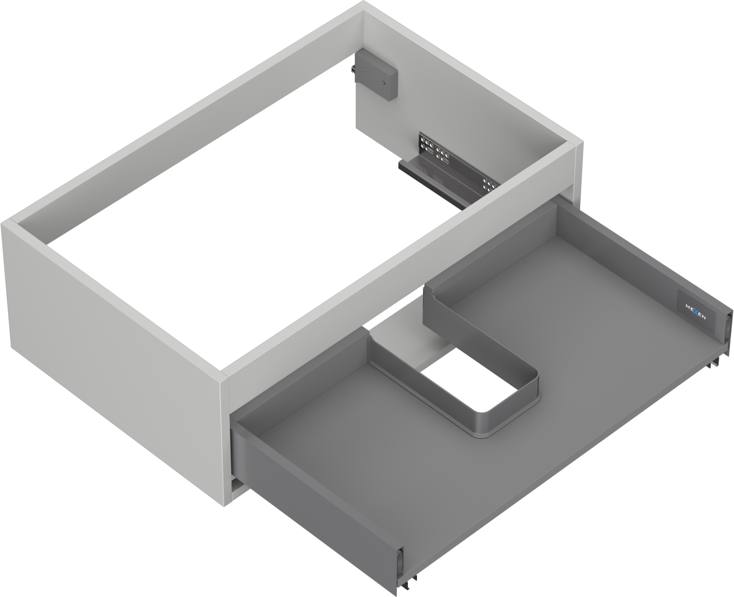 Utskärningen i lådan är utformad på ett sådant sätt att den rymmer vattenlåset som är nödvändigt i tvättställsinstallationer. Tack vare detta kan möbeln installeras fullt ut funktionellt, utan att behöva avstå från utrymme i lådan för installationen.