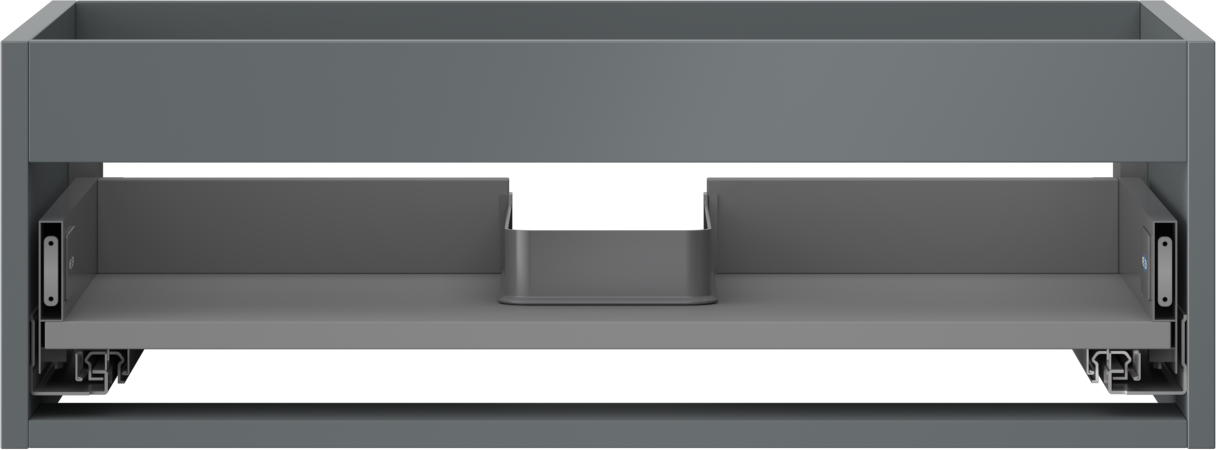Utskärningen i lådan är utformad på ett sådant sätt att den rymmer vattenlåset som är nödvändigt i tvättställsinstallationer. Tack vare detta kan möbeln installeras fullt ut funktionellt, utan att behöva avstå från utrymme i lådan för installationen.