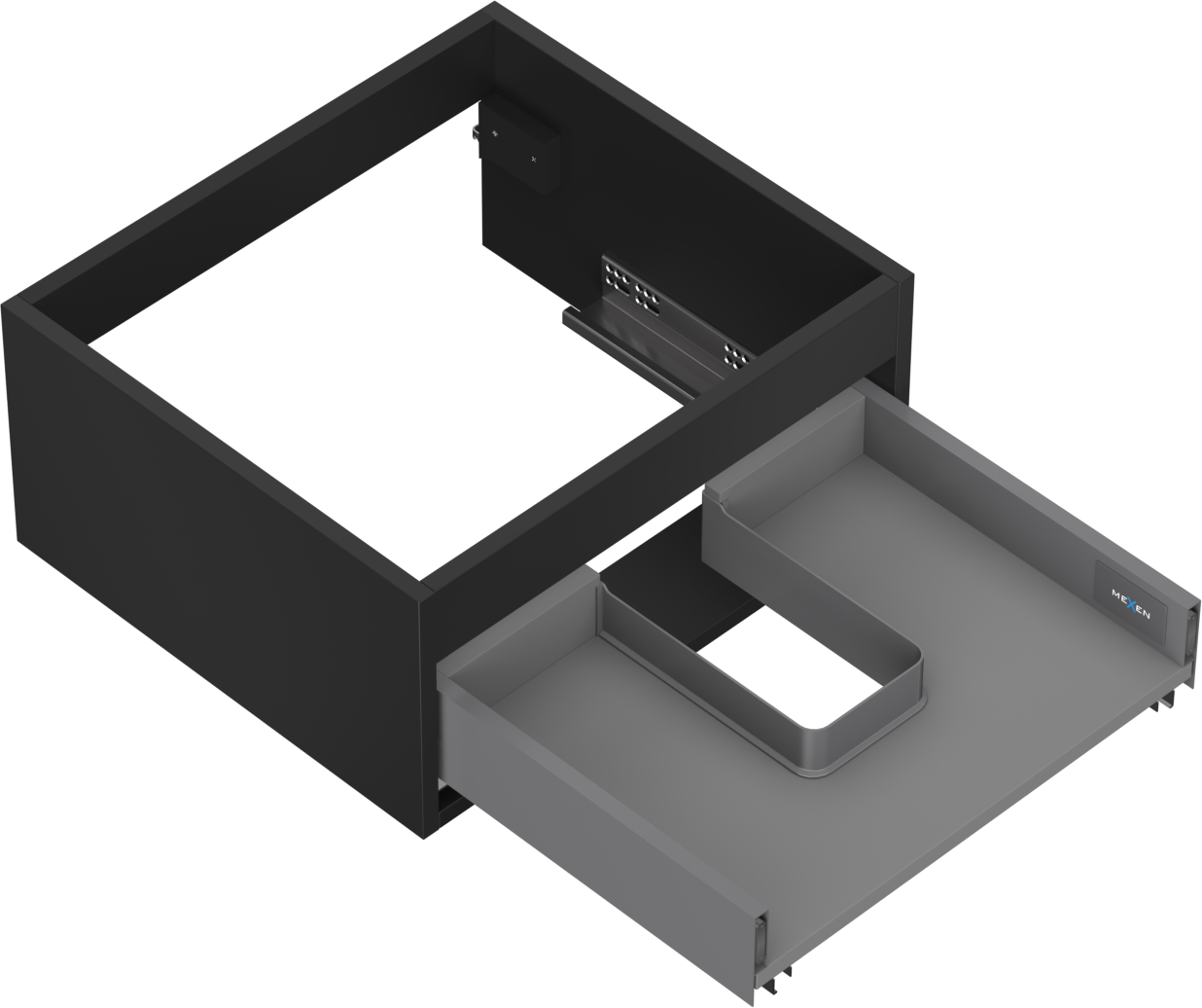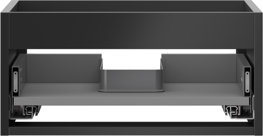 Utskärningen i lådan är utformad på ett sådant sätt att den rymmer vattenlåset som är nödvändigt i tvättställsinstallationer. Tack vare detta kan möbeln installeras fullt ut funktionellt, utan att behöva avstå från utrymme i lådan för installationen.