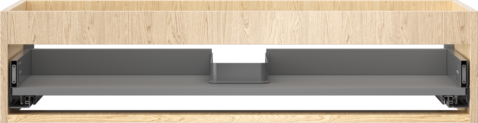 Utskärningen i lådan är utformad på ett sådant sätt att den rymmer vattenlåset som är nödvändigt i tvättställsinstallationer. Tack vare detta kan möbeln installeras fullt ut funktionellt, utan att behöva avstå från utrymme i lådan för installationen.