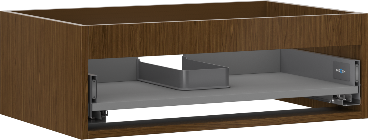 Utskärningen i lådan är utformad på ett sådant sätt att den rymmer vattenlåset som är nödvändigt i tvättställsinstallationer. Tack vare detta kan möbeln installeras fullt ut funktionellt, utan att behöva avstå från utrymme i lådan för installationen.
