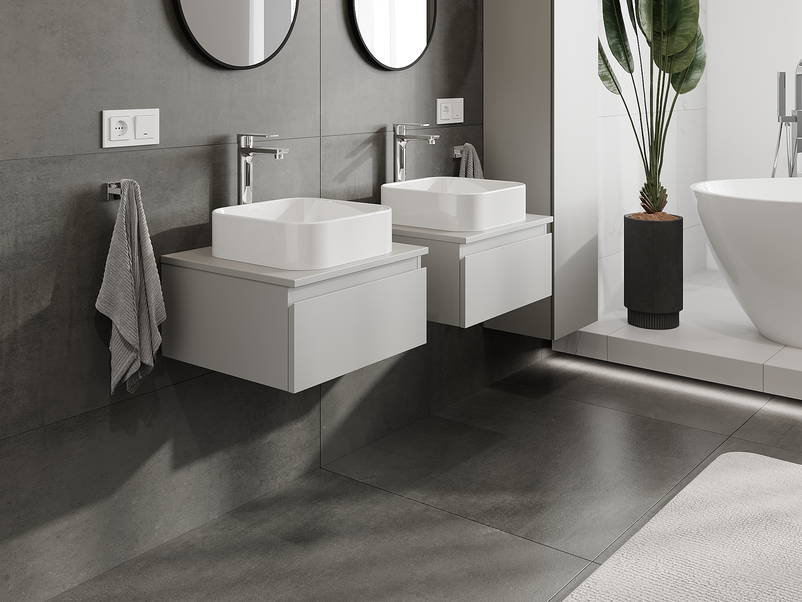 Våra modulära badrumsmöbler kan kombineras i olika färgkonfigurationer, vilket möjliggör fullständig personalisering. Du kan välja både utseende och funktioner för respektive delar, vilket gör att möblerna kan anpassas till dina egna stilistiska och funktionella preferenser.