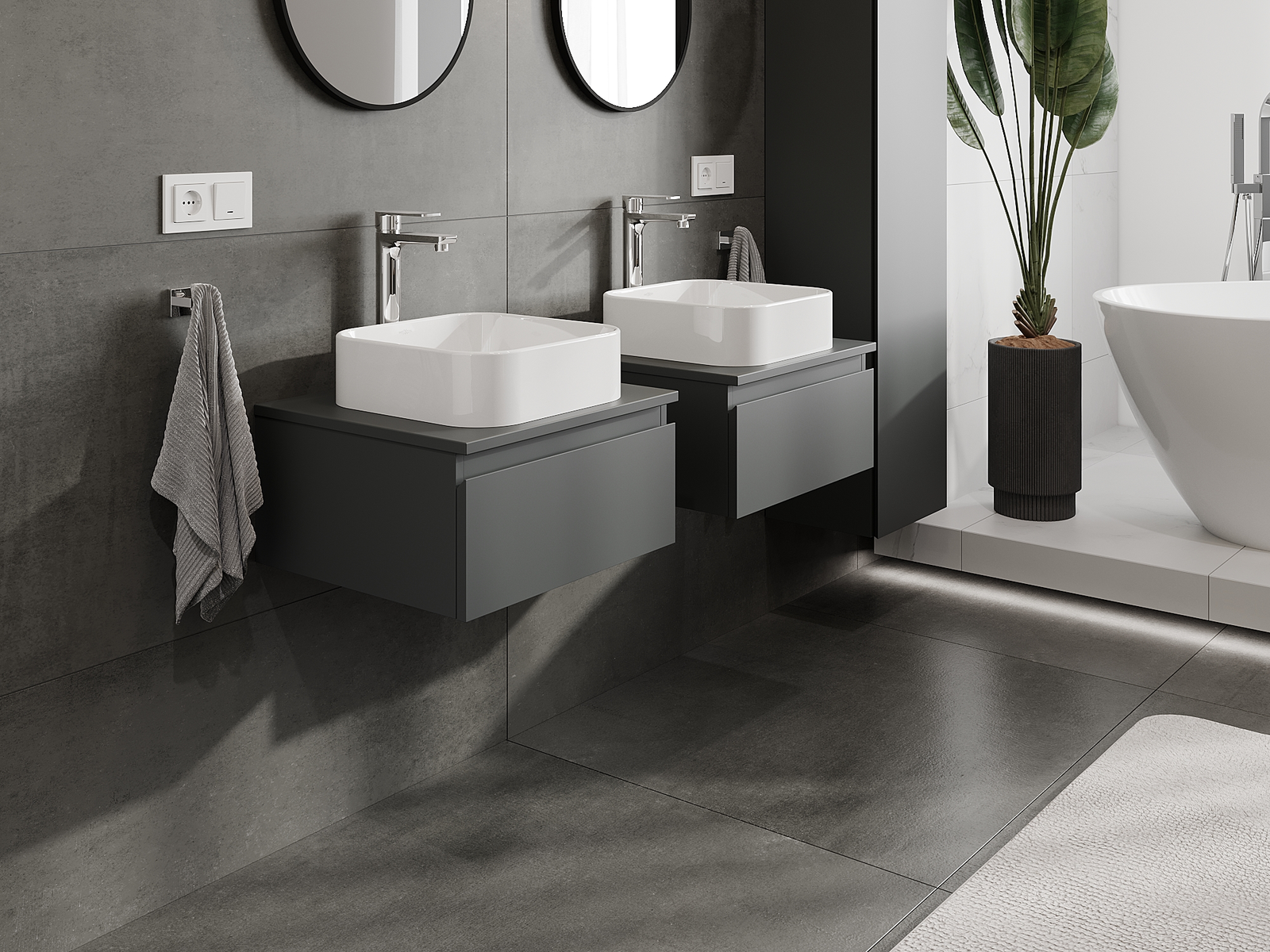 Våra modulära badrumsmöbler kan kombineras i olika färgkonfigurationer, vilket möjliggör fullständig personalisering. Du kan välja både utseende och funktioner för respektive delar, vilket gör att möblerna kan anpassas till dina egna stilistiska och funktionella preferenser.